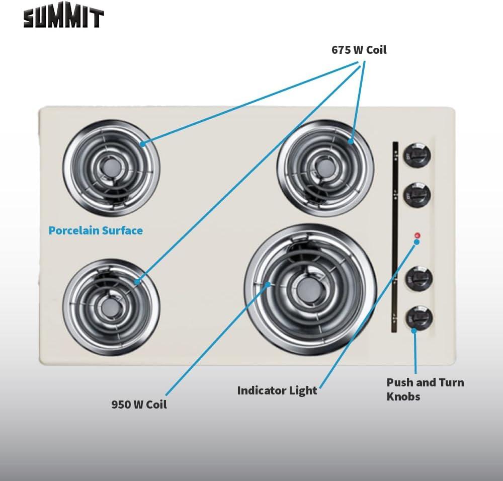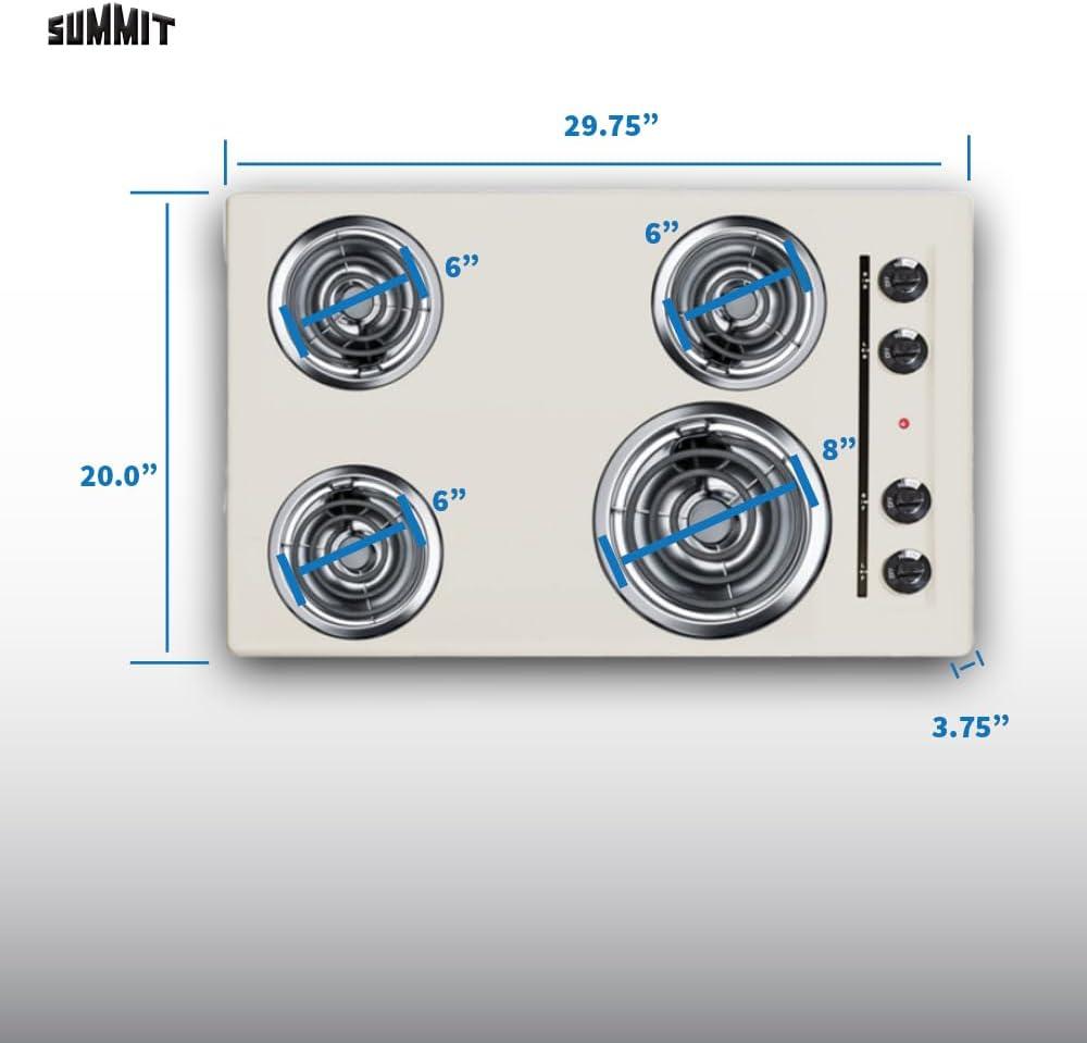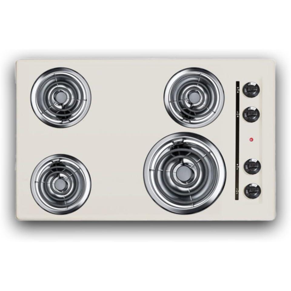 Summit 30″ 4 Burner Electric Cooktop, 230 Volt Coil Electric Cooktop, Bisque- WEL05(Bisque)