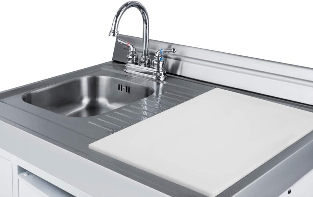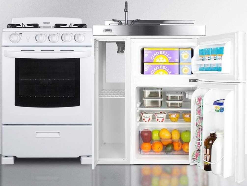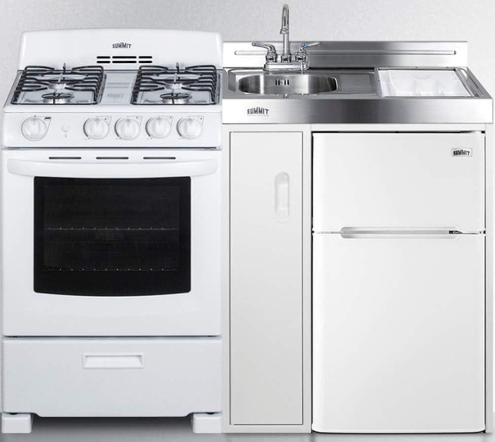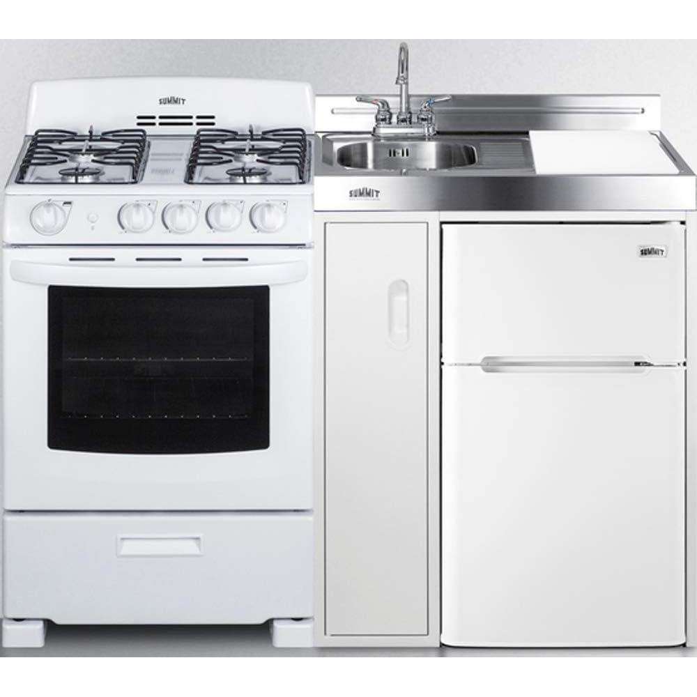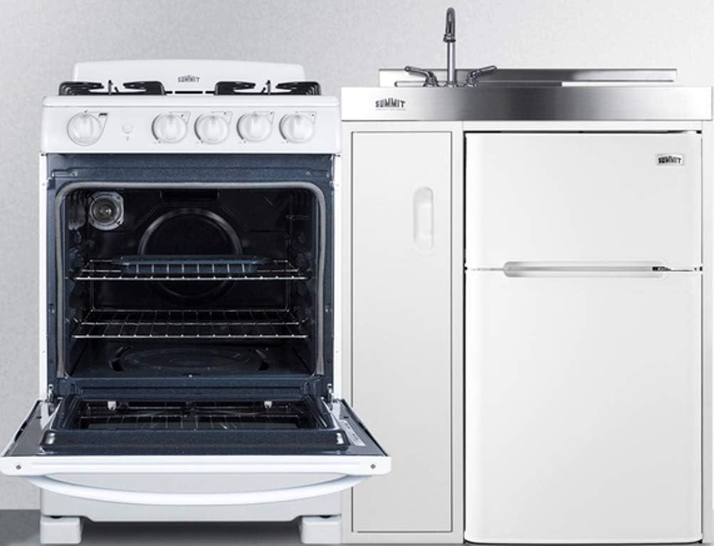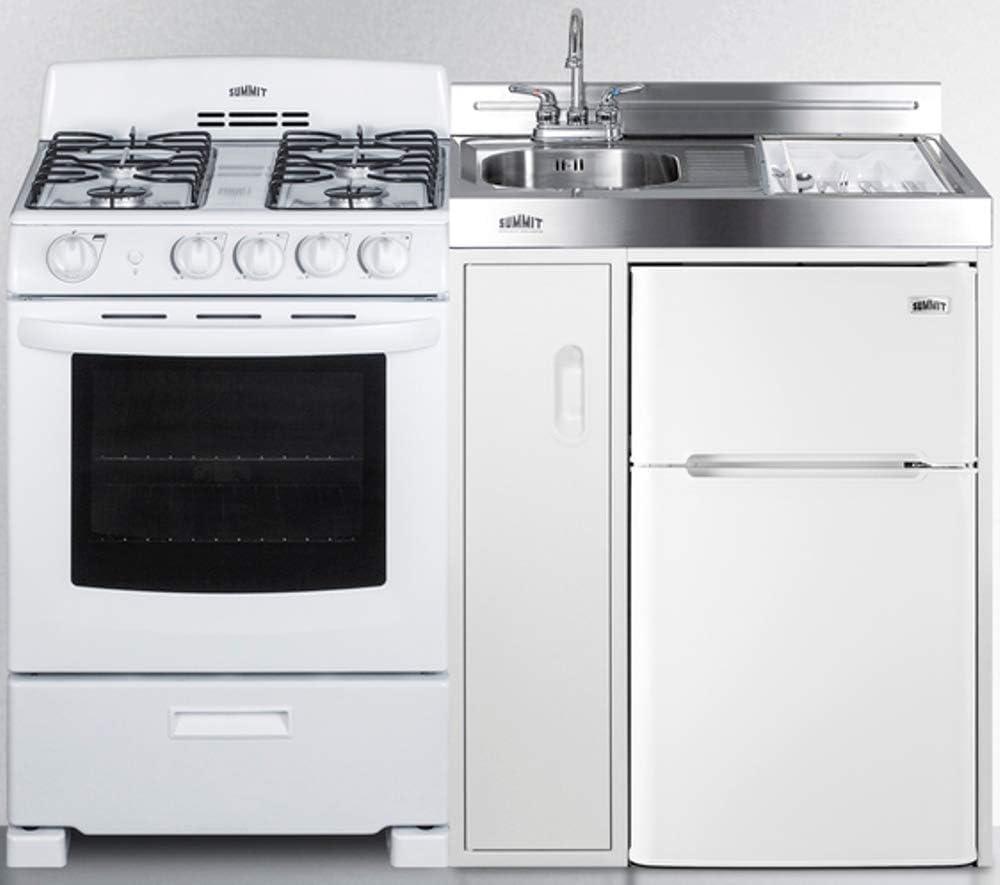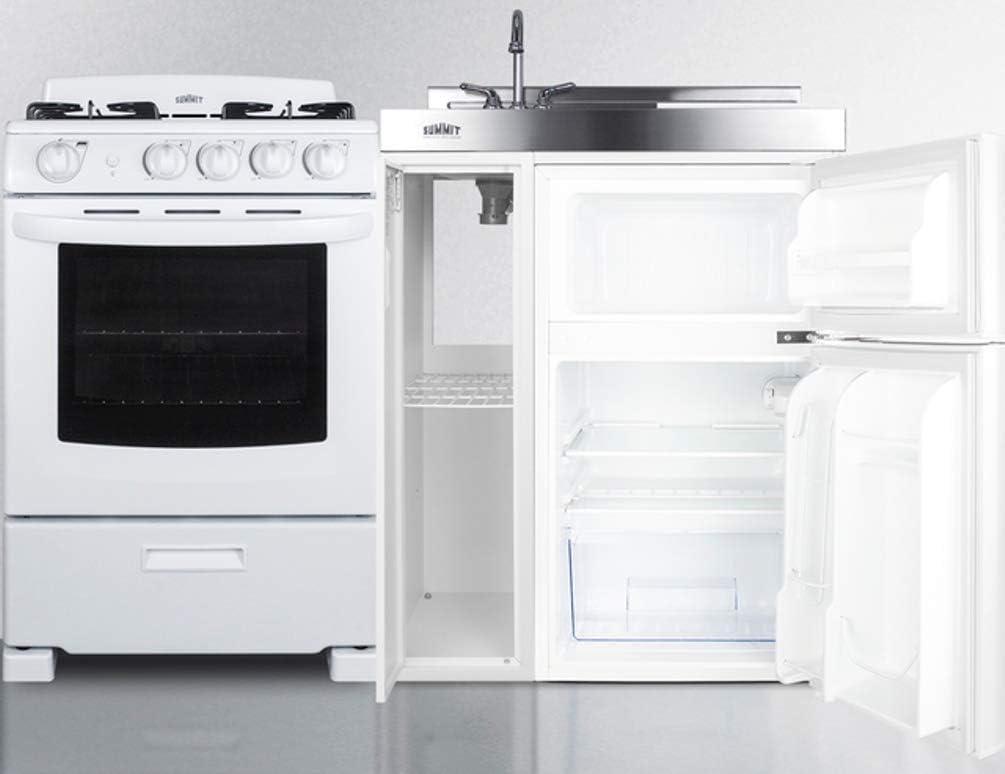 Summit Appliance ACK54GASW 54″ Wide All-in-One Kitchenette with 115V 4-Burner Gas Range, Refrigerator-Freezer, Sink, Cutting Board and Cutlery Storage, and a Storage Cabinet