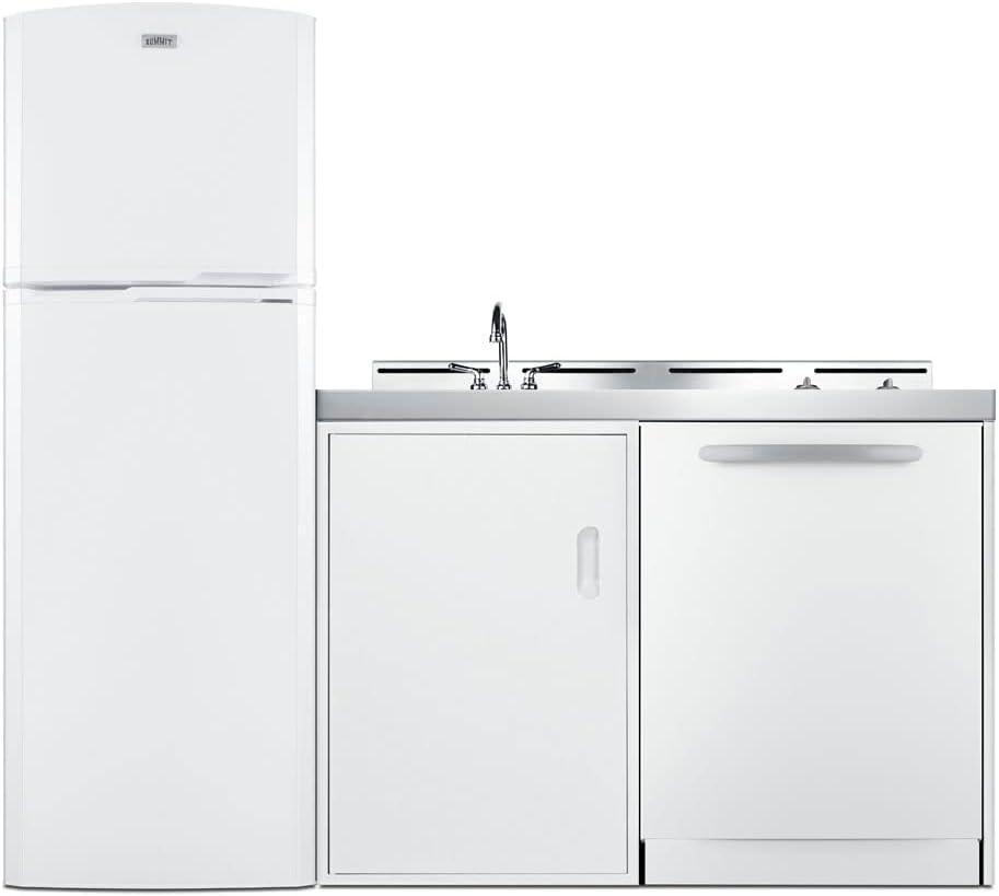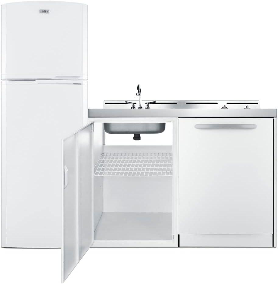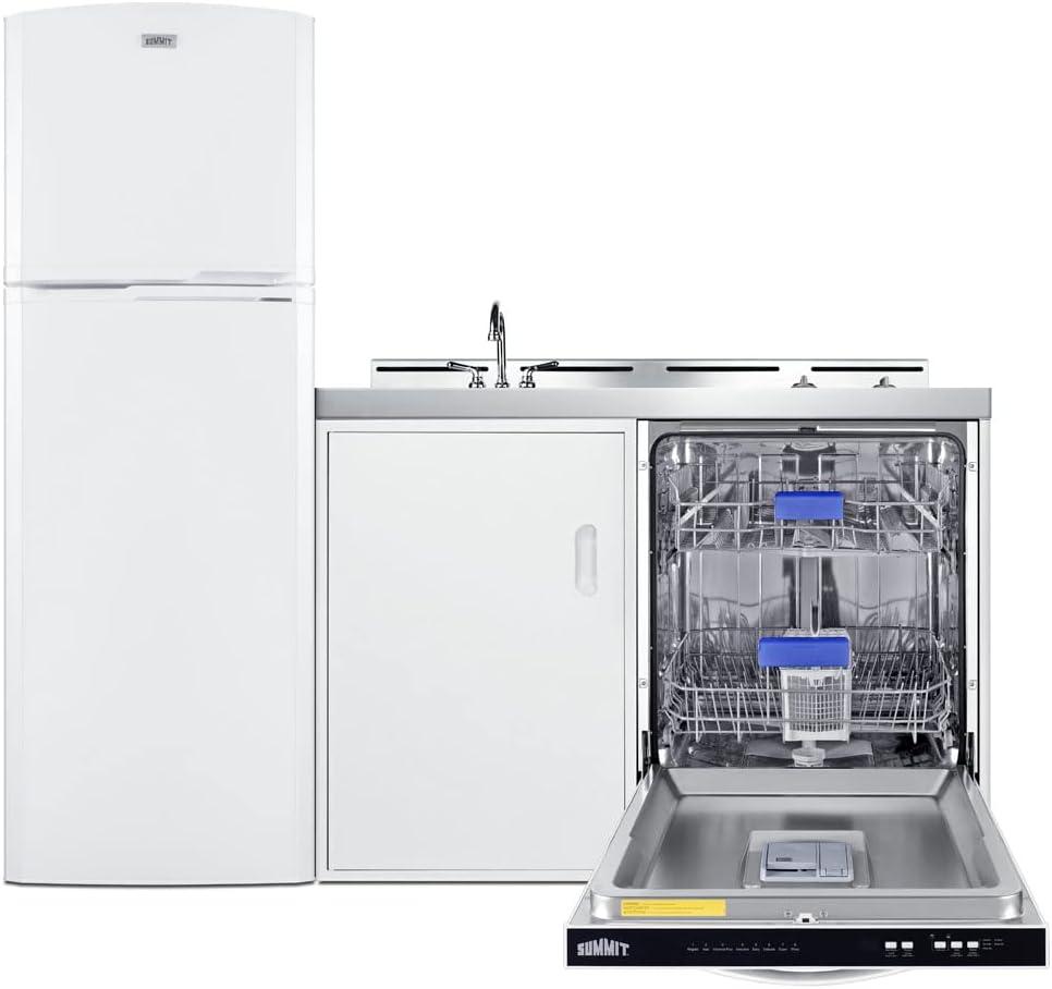Summit Appliance ACKDW721G 72″ Wide All-in-one Kitchenette with Full-sized Frost-free Refrigerator-Freezer, 24″ Dishwasher, Two Burners Radiant 115V, Storage Cabinet, Sink and Faucet