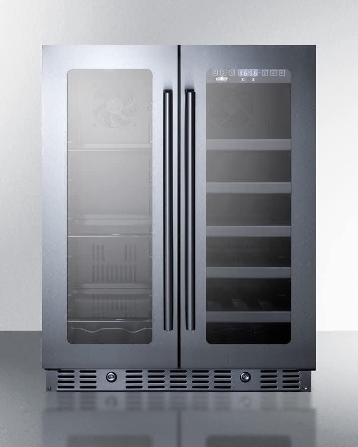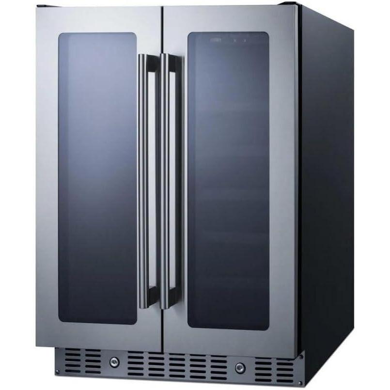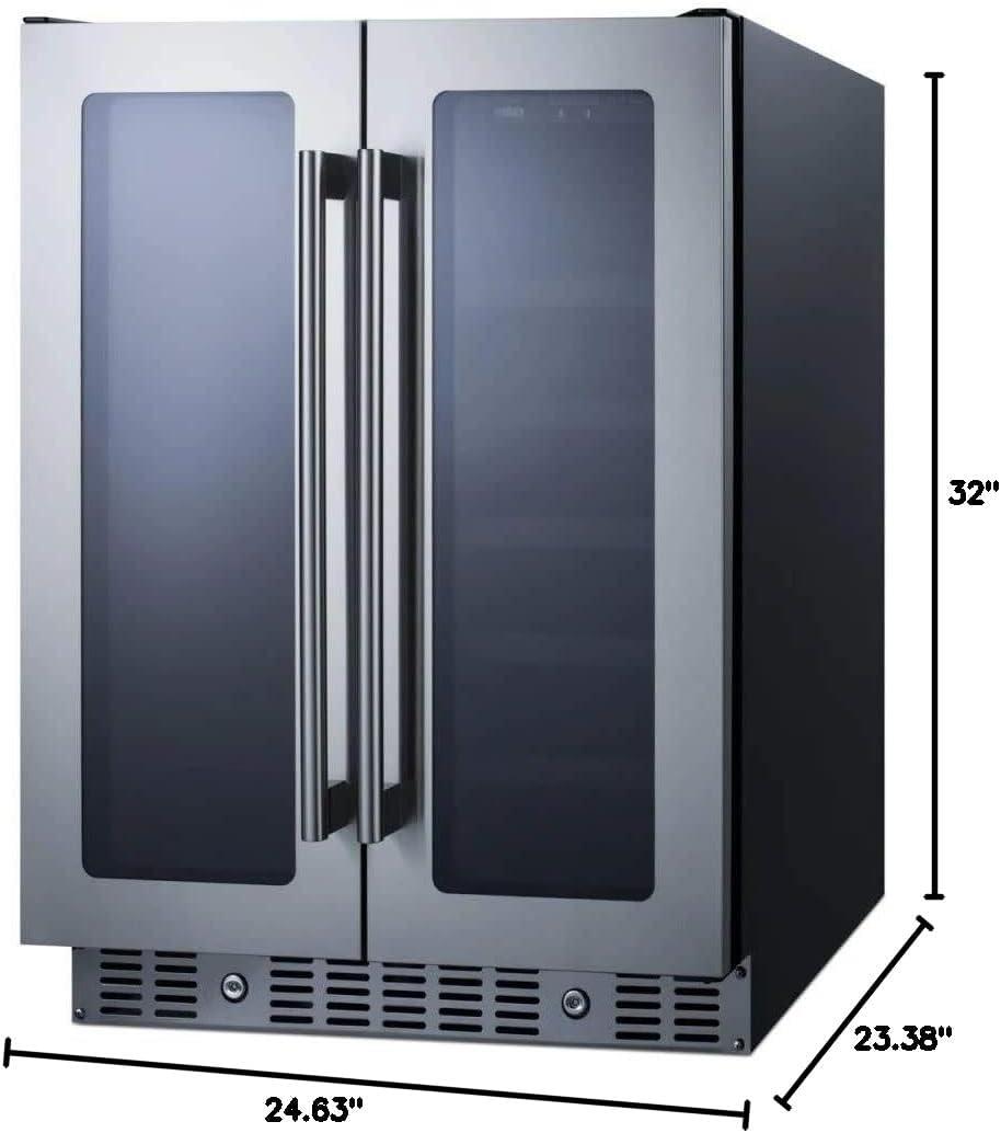 Summit Appliance ALFD24WBV ADA Compliant 24″ 4.6 Cu.Ft. Built-in or Freestanding Dual Zone Wine/Beverage Center with French Door Swing, Seamless Stainless steel Trimmed Glass Doors and Black Cabinet
