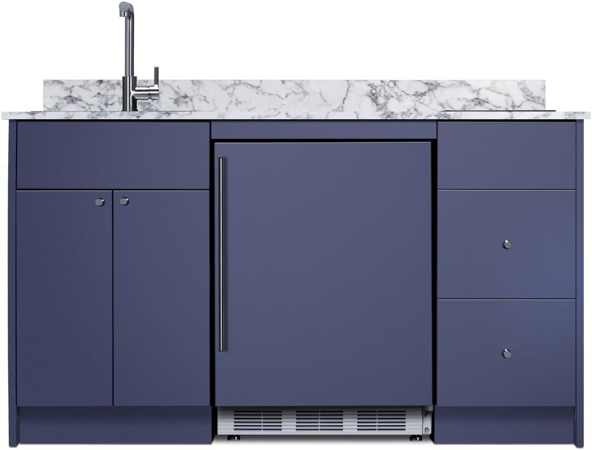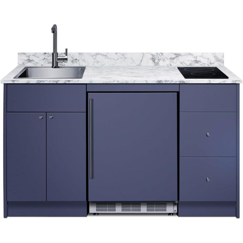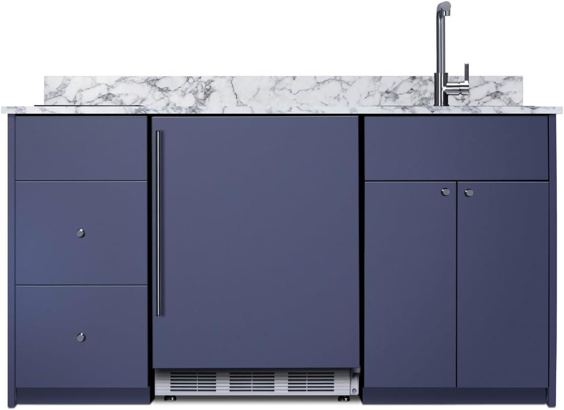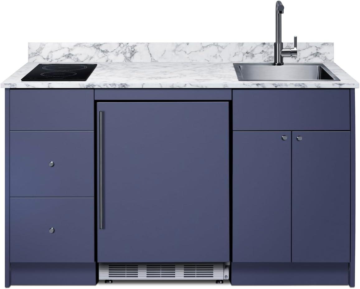 Summit All in One Kitchenette, with Induction Cooktop, Refrigerator Freezer, Sink, and Storage, ENERGY STAR, Standalone Kitchen, White- CALDERAWH35ISINKL(Blue)