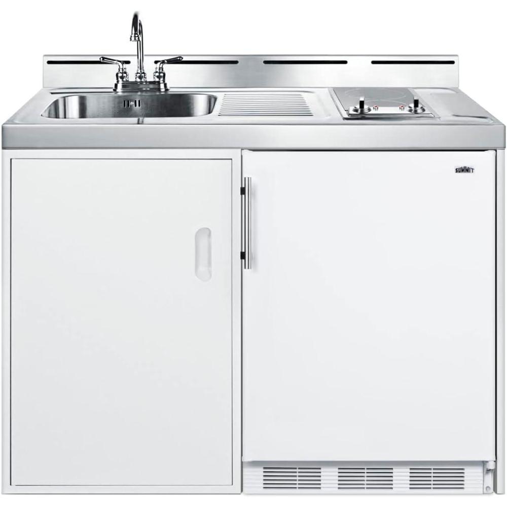Summit 60″ All-in-One Kitchenette with Electric Coil Range, Refrigerator-Freezer, Sink, White- ACK60COILW(White)
