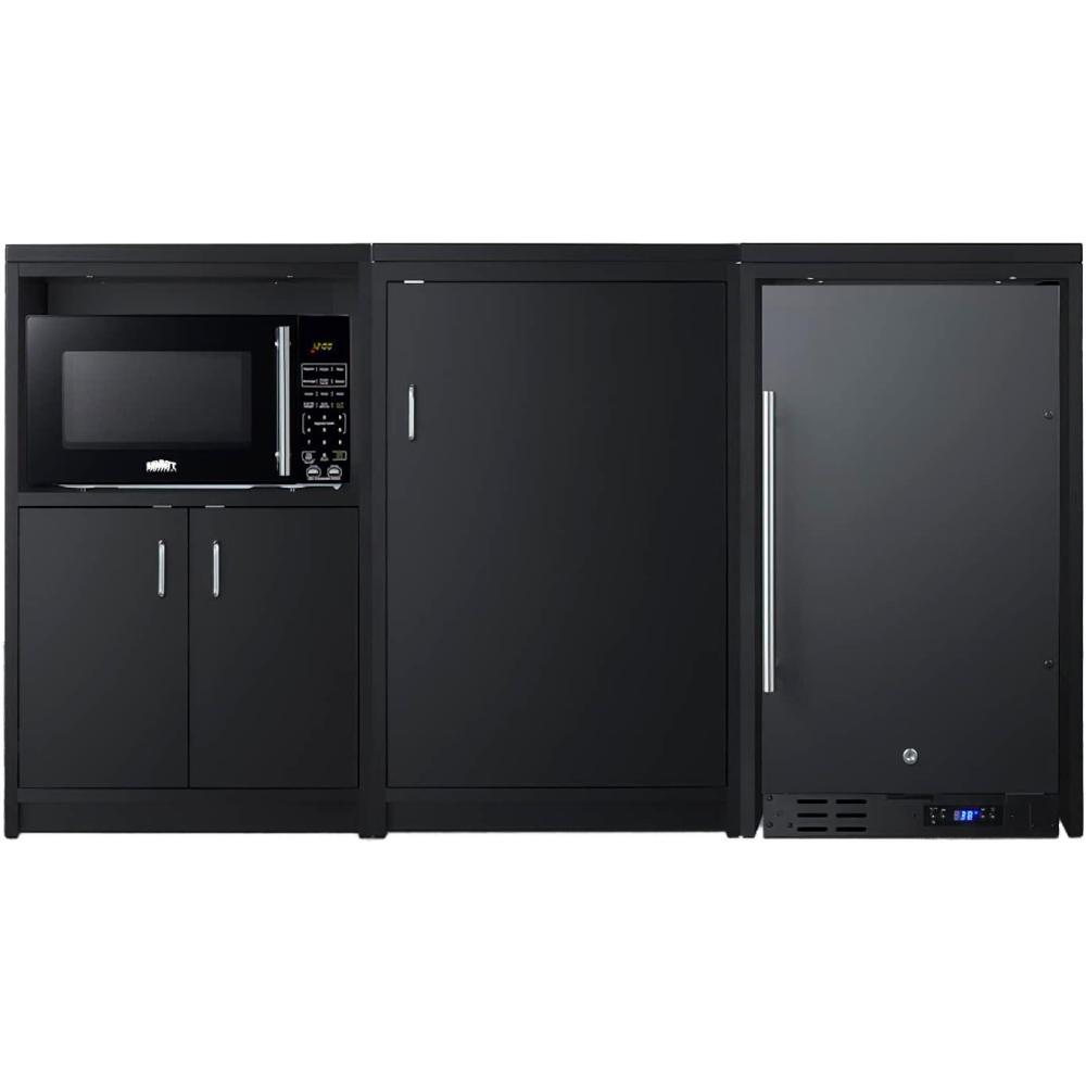 Summit Appliance CWSUITE64R 64″ Wide Casework Suite, Black; Refrigerator and Microwave Included; ADA Compliant Countertop Height; 2.7 cu.ft. All-Refrigerator; Leveling Legs; Versatile Configuration
