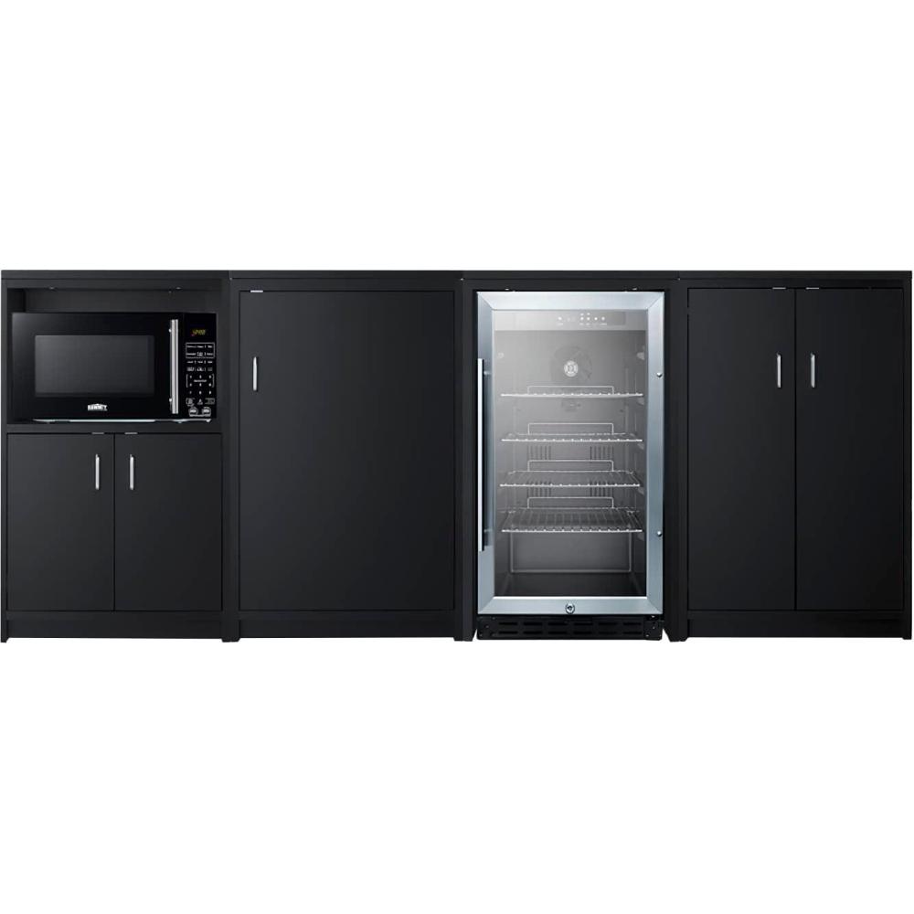 Summit Appliance CWSUITE85G 85" Wide Casework Suite with Beverage Center and Microwave, ADA Height; Trash Receptacle Included; 2.7 cu.ft. Beverage Center; Leveling Legs; Black