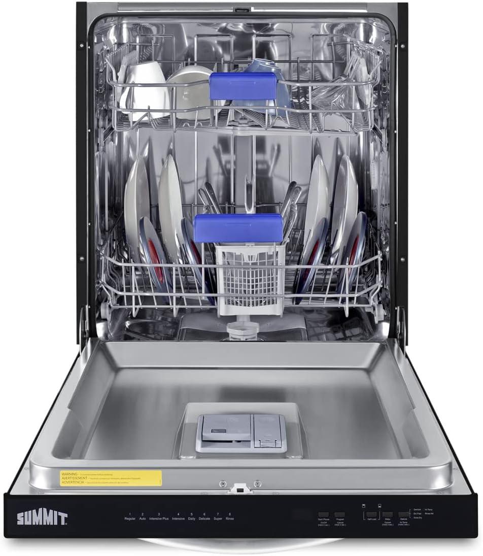 Summit Appliance DW242WADA 24" Wide ENERGY STAR Certified ADA Compliant Built-in Dishwasher with White Door, Top Control Panel, Pro Style Handle, Stainless Steel Interior, Made in Europe(Black)