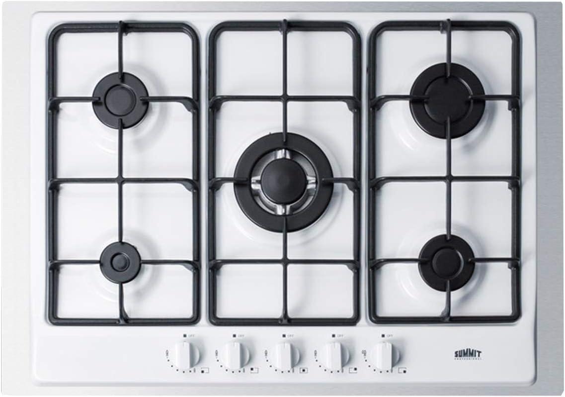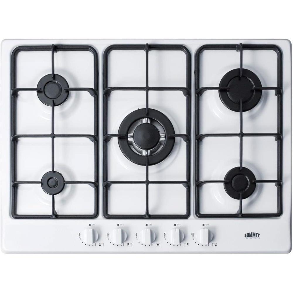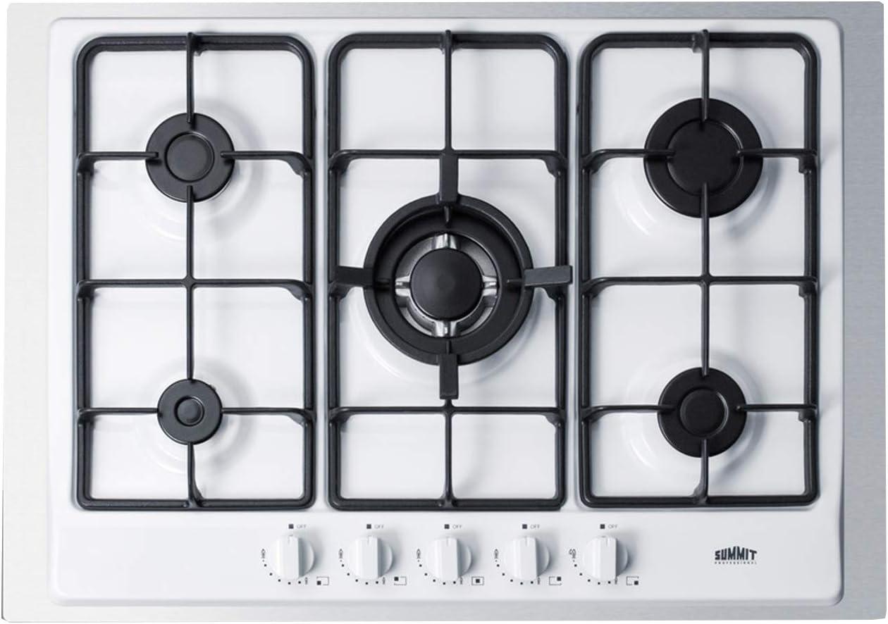 imageSummit Appliance GC527SSTK30 5Burner Gas Cooktop in Stainless Steel with Sealed Burners Cast Iron Grates Wok Stand and Stainless Steel Frame to Allow Installation in 30quot Wide Counter OpeningsWhite