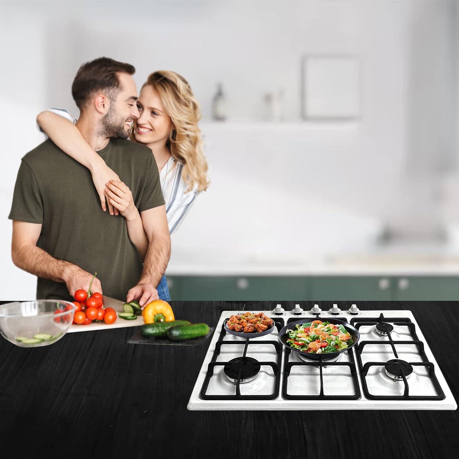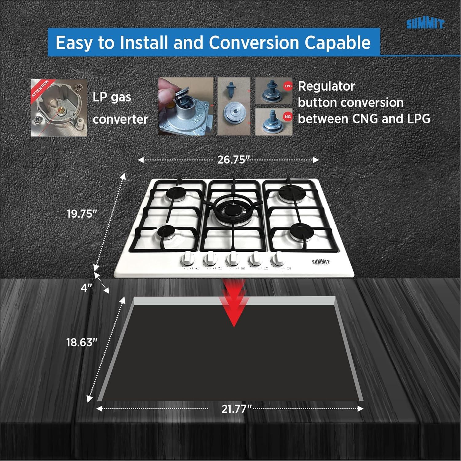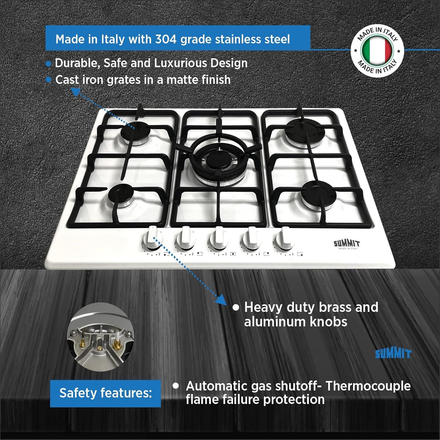 imageSummit Appliance GC527SSTK30 5Burner Gas Cooktop in Stainless Steel with Sealed Burners Cast Iron Grates Wok Stand and Stainless Steel Frame to Allow Installation in 30quot Wide Counter OpeningsWhite