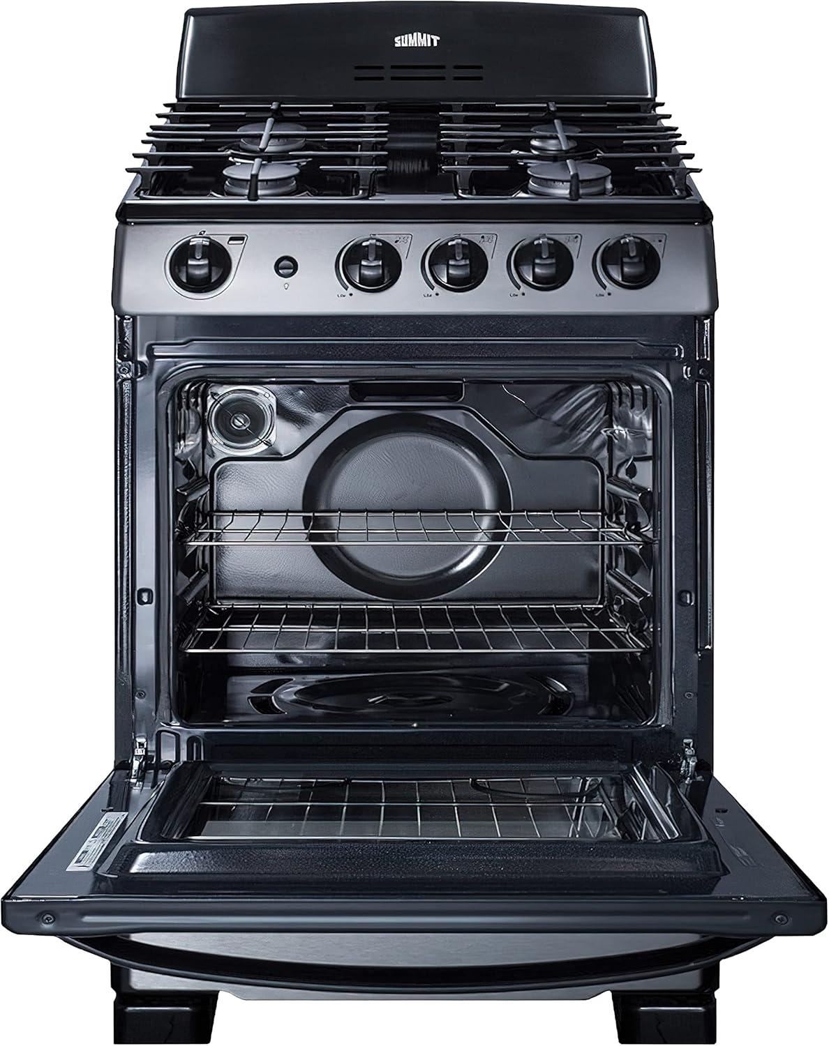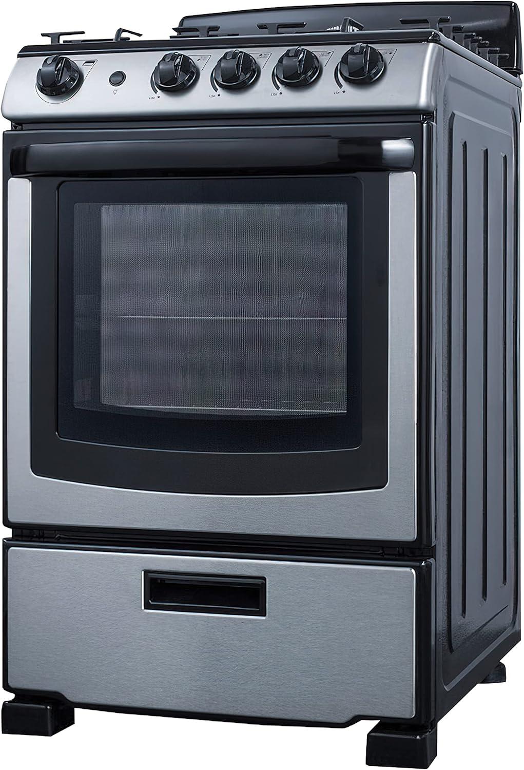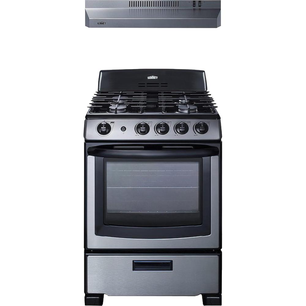 Features: Includes PRO247SS 4-burner gas range with oven and H24RSS convertible range hood to create a fully functional cooking and ventilation station in small kitchens Perfectly sized for apartments and smaller kitchens Can be used for ducted venting to the outside or recirculating ventilation where no external venting is possible Ships for standard 3 1/4″ x 10″ vertical or horizontal exterior venting and convertible to a 6″ or 7″ round vertical venting with a transition (not included) Hood ships pre-set for recirculating mode but can be converted for ducted use in less than a minute Hood ships with a removable easy-to- aluminum mesh filter to capture grease, and a charcoal filter to absorb odors when using the hood in recirculating mode Low profile design offers a classic way to finish your kitchen, with a complete stainless steel exterior with an easy-to-match horizontal grain Four sealed burners with removable cast iron tops ensure safer, cleaner cooking Unit is set for natural gas but can be converted aftermarket with the included LP kit Covered under a 1 year parts and labor manufacturer Range Specifications: Oven Capacity: 2.9 Cu. Ft. Back Left Burner BTU: 9500 Front Left Burner BTU: 9500 Back Right Burner BTU: 5000 Front Right Burner BTU: 12000 Broil Element: Yes Height: 42 Width: 23-5/8 Depth: 24-1/2 Range Hood Specifications: Width: 23-7/8″ Depth: 18-5/8 Height: 5-1/8 Voltage: 115V Control Type: Turn Knob Duct Size: 3″1/4″ x 10″ Number of Speeds: 2