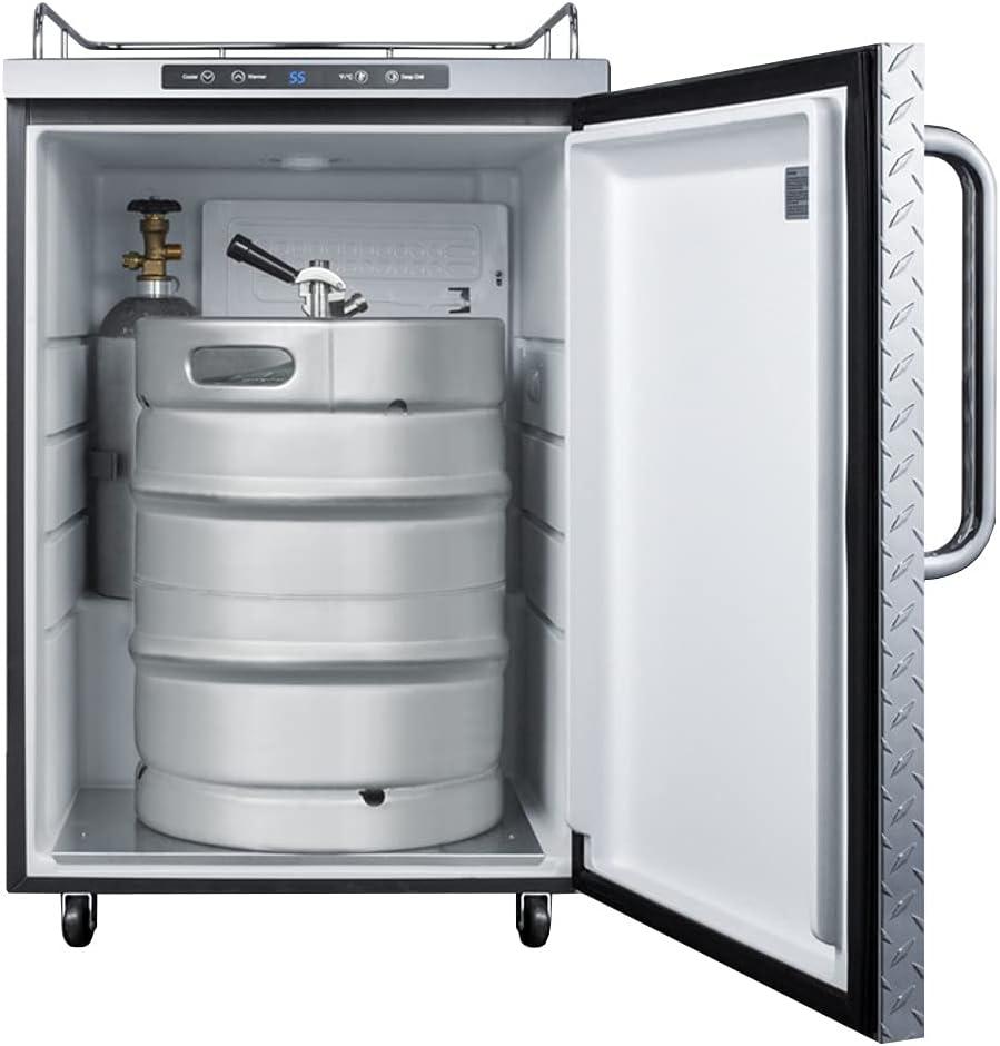 Full-size compartment accommodates half, quarter or 1/6th keg sizes