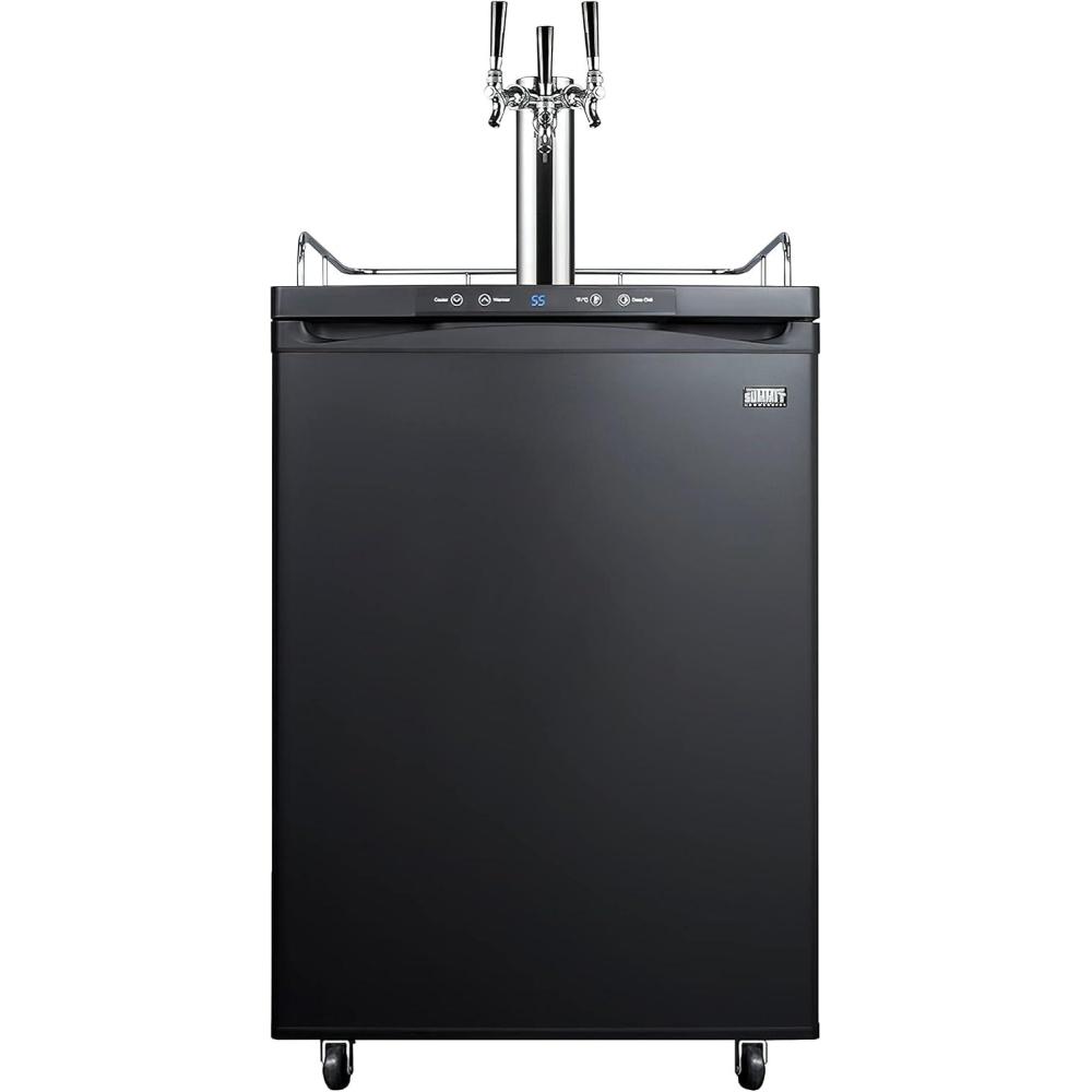 Summit Appliance SBC635MTRIPLE 24" Wide Kegerator, Black; Full-Sized Beer Dispenser; 5.6 cu.ft Capacity; Triple Tap System; Stainless Steel Floor Cover; Digital Thermostat; Automatic Defrost(Black)