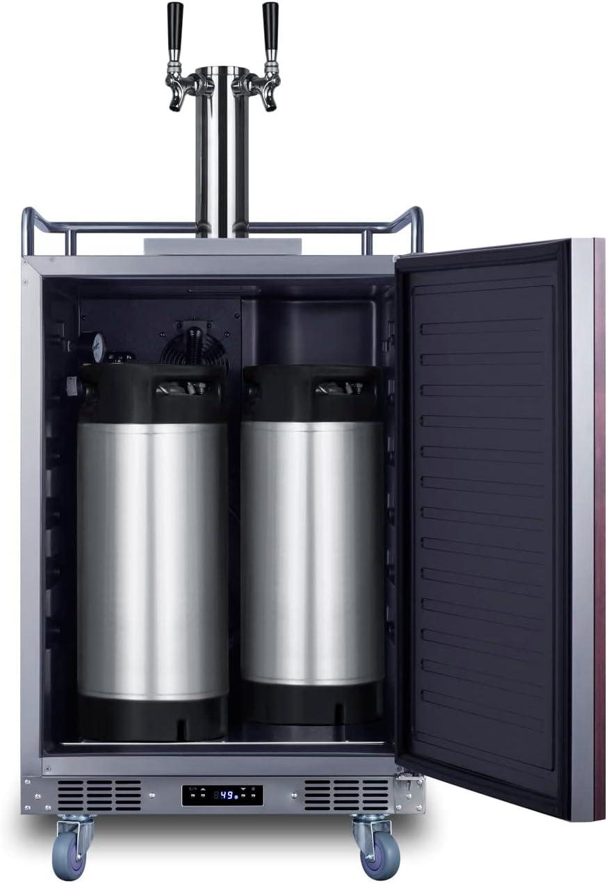 Summit Appliance SBC682CFTWIN 24″ Wide Built-In Cold Brew Coffee Kegerator; 5.6 cu.ft. Capacity; Weatherproof Design; Dual Tap System; Automatic Defrost; Digital Thermostat; 4 Casters; Tap Cool System(Stainless Steel)