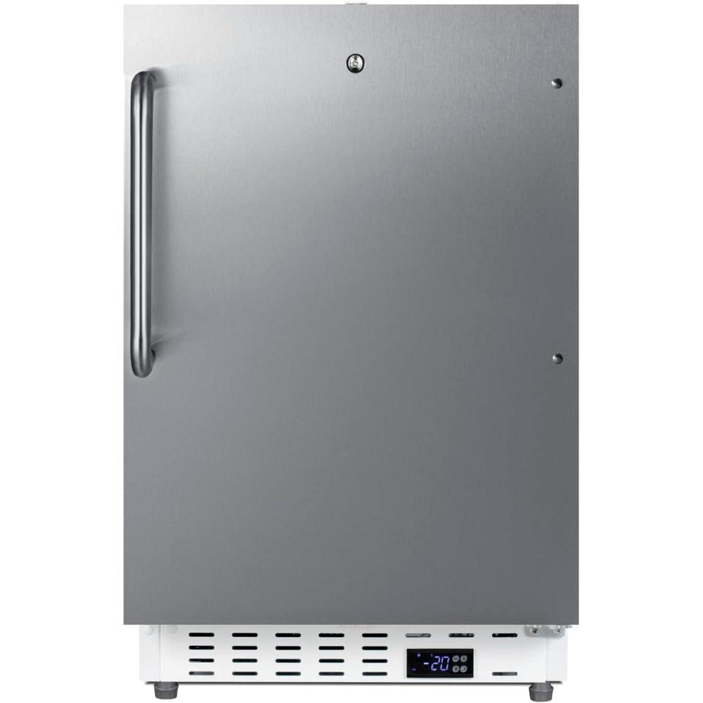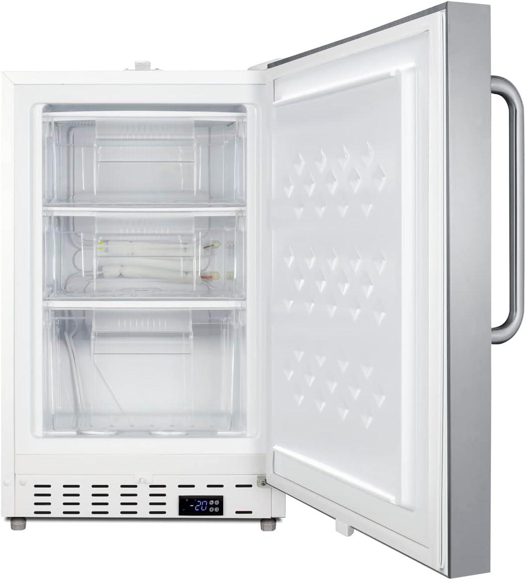 Summit Appliance SCF505SSTBADA 20" Wide Built-in Undercounter ADA Compliant Commercial All-freezer with Stainless Steel Door, Towel Bar Handle, Front Lock, Manual Defrost and White Cabinet(Stainless Steel / White)