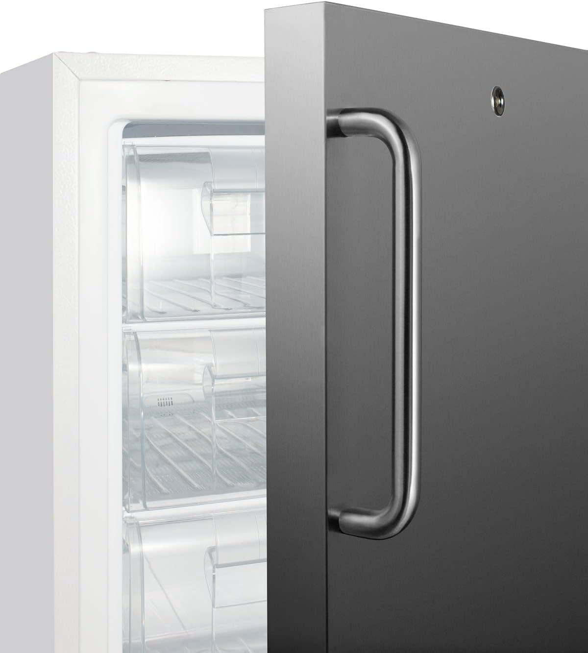 Summit Appliance SCF505SSTBADA 20″ Wide Built-in Undercounter ADA Compliant Commercial All-freezer with Stainless Steel Door, Towel Bar Handle, Front Lock, Manual Defrost and White Cabinet