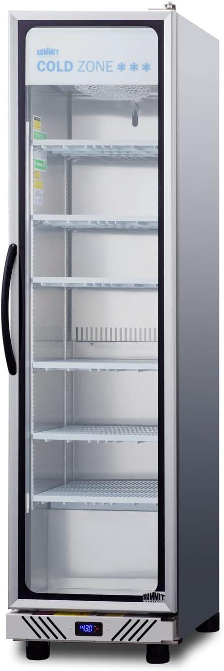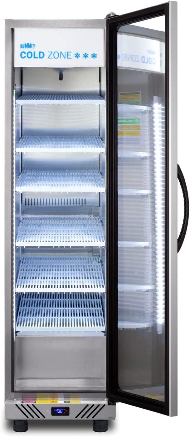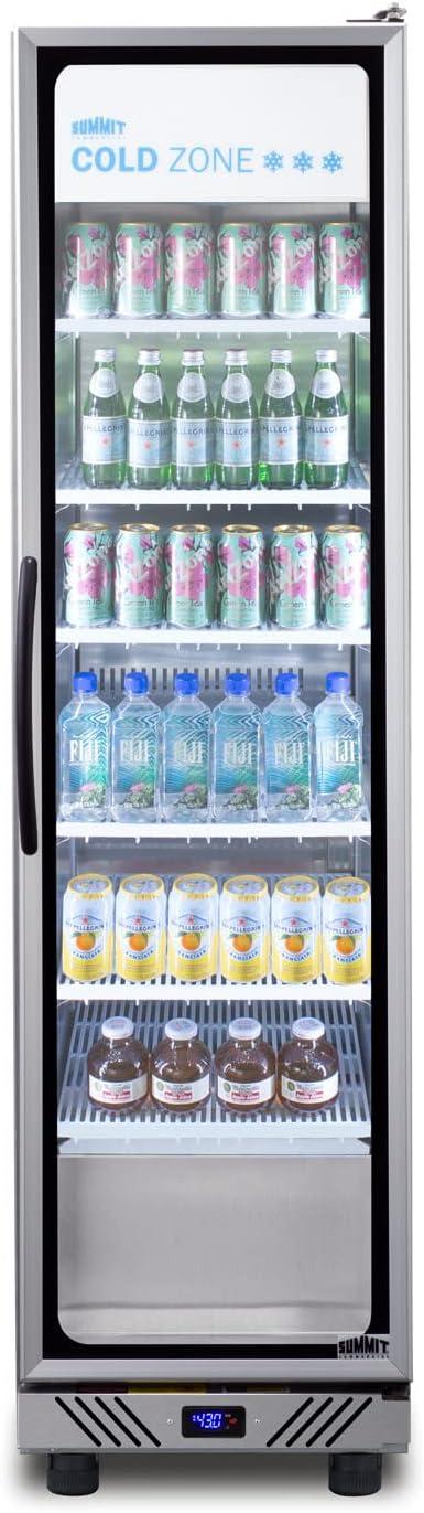 Summit 24″ Undercounter Beverage Refrigerator with Reversible Glass Door | Commercial Display Fridge for Wine Beer Soda | 5.0 Cu Ft, (3) Shelves, 23.63″W x 23.5″D x 34″H, Stainless Steel, Black, NSF