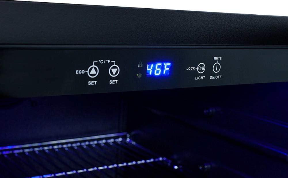– Seamless stainless steel trimmed glass door provides an elegant view of your collection
