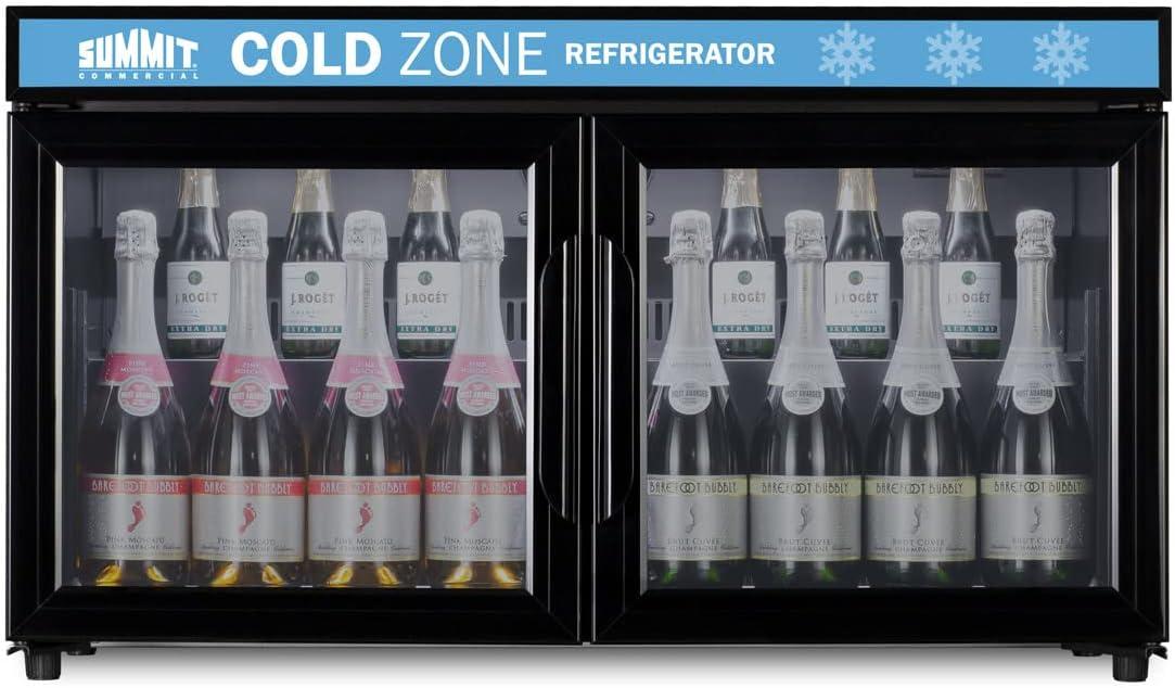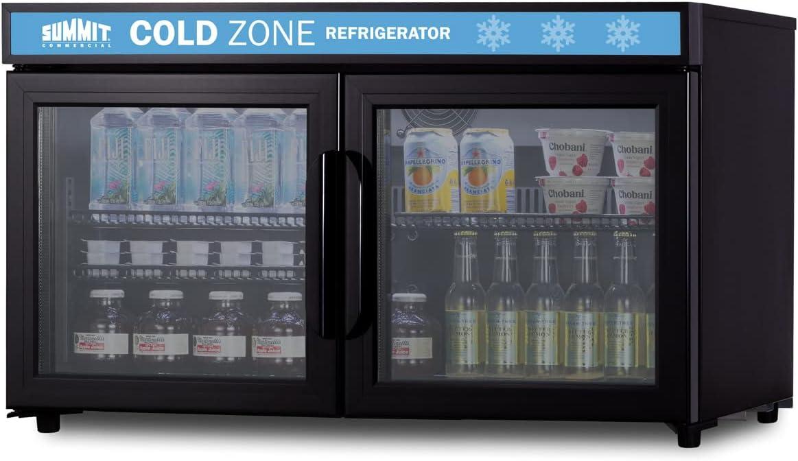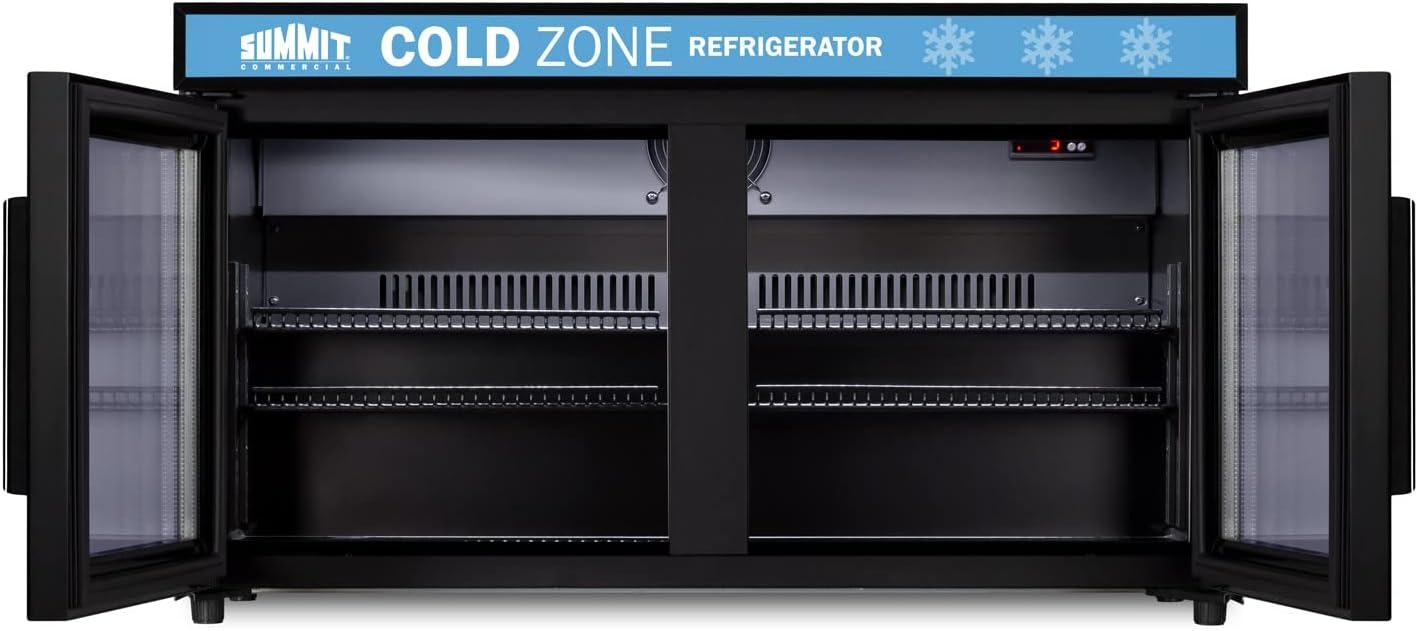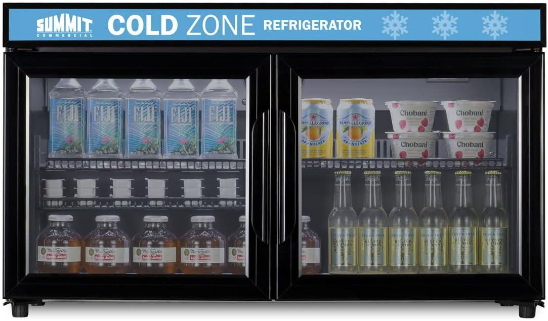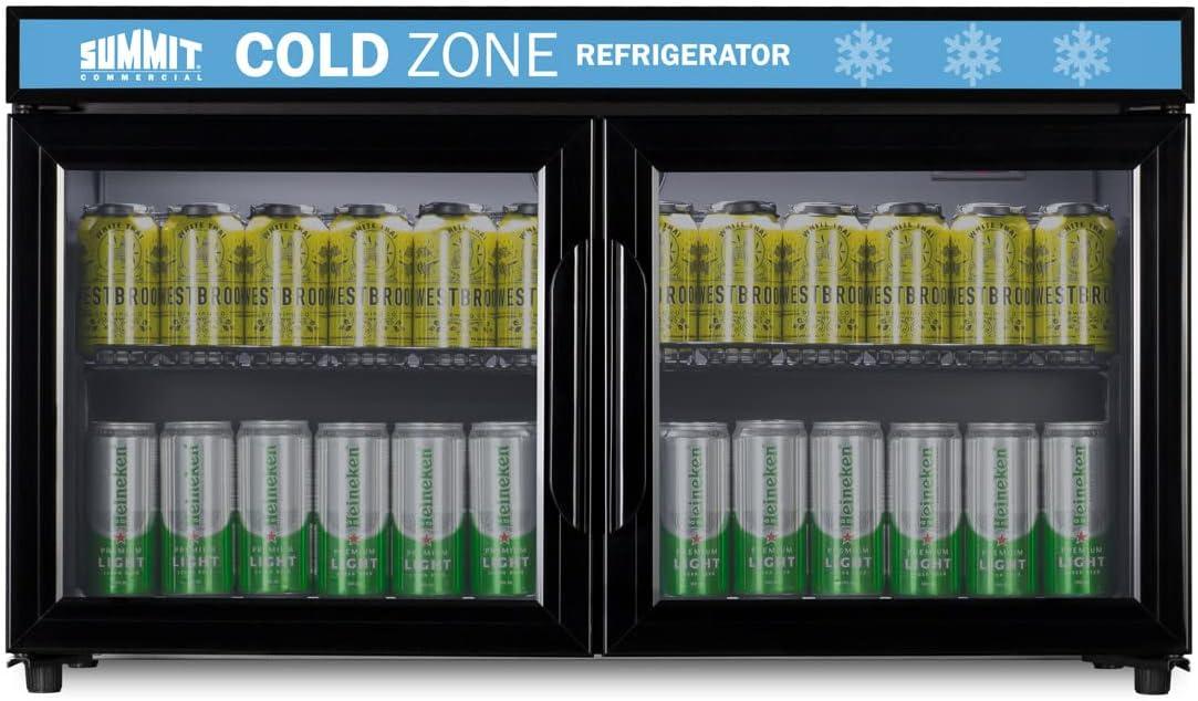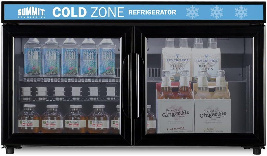 SPECIFICATIONS Overview Height of Cabinet 21.25″ (54 cm) Width 36.0″ (91 cm) Width with Door Open 39.0″ (99 cm) Depth 17.5″ (44 cm) Depth with Handle 18.5″ (47 cm) Depth with door at 90° 34.25″ (87 cm) Capacity 3.2 cu.ft. (91 L) Defrost Type Automatic Door Glass Cabinet Black US Electrical Safety UL 471 by SGS Canadian Electrical Safety CSA C22.2 No. 120 by SGS Sanitation NSF 7 by SGS Amps 1.2 Voltage/Frequency 115 V AC/60 Hz Weight 86.0 lbs. (39 kg) Shipping Weight 91.0 lbs. (41 kg) Parts & Labor Warranty 1 Year Compressor Warranty 5 Years UPC 761101076331 Refrigerator Features Door Swing French Shelf Type Wire Shelf Qty 4 Adjustable Shelves Yes Can Storage Yes Thermostat Type Digital Fan Type Interior Refrigerant Type R600a Refrigerant Amount 0.96oz. High Side PSI 320.0 Low Side PSI 130.0 Level Legs Qty 4 Interior Light Yes Temperature Range 2 to 6ºC/36°F to 43°F Dimensions Interior Height 13.63″ (35 cm) Interior Width 33.0″ (84 cm) Interior Depth 13.0″ (33 cm) Compressor Step Height 7.25″ (18 cm) Compressor Step Width 33.0″ (84 cm) Compressor Step Depth 7.25″ (18 cm) AVAILABLE UPGRADES Door T3F Door Tint Reflective door tint in light blue finish for medium energy savings T1SF Door Tint Reflective door tint in dark smoke finish for maximum energy savings on full-size and two-door models T4F Door Tint Neutral door tint in light smoke finish for moderate energy savings T2F Door Tint Tinted door in reflective deep blue finish with high energy savings FEATURES 17½” shallow depth Ideal for back bars, grocery stores, and similar spaces with limited footprint space Commercially approved Meets NSF-7 sanitation standards and UL-471 for use in commercial environments Exterior LED panel LED panel allows users to insert their own decal for a truly customizable look (size insert at 35.67″ W x 2.67″ H) French door swing Two side-by-side doors with French door opening Self-closing doors Doors will automatically close when left ajar, preventing items from accidentally being exposed to ambient temperatures Automatic defrost Reduced user maintenance with automatic defrost system Fan-forced cooling Internal fan ensures the interior is evenly cooled from top to bottom Removable shelves Four black wire shelves accommodate a variety of storage options or can be removed to store larger food and beverage items Interior LED lighting Illuminates the interior for an easy view of stored contents Digital thermostat Electronic controls located on the inside for easy temperature management with a readout in Celsius On/off switch Easily allows users to manage the interior lighting to best meet their needs High/low temperature alarm Audible alarm sounds if the interior temperature rises or falls out of set range Black handles Sturdy, curved black handles on each door provide for easy opening Fully finished black cabinet Allows the unit to be used freestanding Sealed back Space-saving design that offers easier cleanability 100% CFC free Environmentally friendly design without ozone-damaging chemicals CARB Compliant Environmentally friendly hydrocarbon-based refrigerant for a greener footprint that meets current CARB regulations DESCRIPTION Summit Commercial refrigerators are designed for convenient use in an attractive presentation to increase impulse purchases. The SCR3502D is a 17.5″ shallow depth single-zone beverage refrigerator with a 36″ width, making it ideal for countertops and use on or in shelves (with proper ventilation). It is SGS-listed to NSF-7 standards for use in commercial settings and is designed for freestanding use. Its French door swing with two glass doors offers a full view inside the 3.2 cu.ft. interior, while pre-installed curved, sturdy black handles make for easy opening of the unit. Both doors have a self-closing feature to help protect stored items in commercial settings where customers may not take the time to ensure a tight seal. The fully-finished black cabinet suits any setting, with a sealed back for easier cleaning. Four leveling legs keep the unit level on uneven surfaces. Inside, the SCR3502D utilizes automatic defrost operation for minimal user maintenance. LED lighting illuminates the interior, while the front LED panel affords the ability for users to insert their own decal for a truly customizable look. Four black wire shelves accommodate a variety of storage options, including condiments, cans, and other refrigerated items. Additionally,the shelves can be removed to store bottles or larger food and beverage items. Each shelf has a front lip to ensure products are secure when the door is opened and closed. Digital controls located on the inside offer easy temperature management with a readout in Celsius. For added peace of mind, an audible high/low temperature alarm sounds if the temperature in the unit goes out of the recommended range. With its compact dimensions and customizable features, the SCR3502D is perfect for back bars, retail and convenience stores, supermarkets, and similar commercial environments seeking dependable refrigeration storage in a versatile design that fits in virtually any small space. For this unit with front locks, see the SCR3502DLL. DOWNLOADS BROCHURE w/ DRAWINGS SCR3502D.pdf TECHNICAL DRAWING (.dwg) SCR35O2D_BEV._CENTER__A-C_2018_.dwg USE & CARE SCR3502D_ACR3512D_Use_and_Care_V4_07.2021.pdf