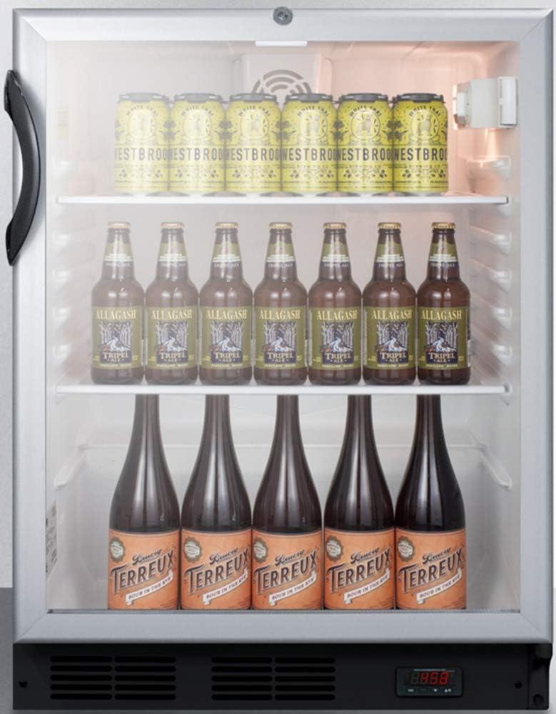 Summit Appliance SCR600BGLBIDTPUBADA Commercial ADA Compliant Glass Door Built-in Craft Beer and Wine Refrigerator with Auto Defrost, Digital Thermostat, Lock and Black Cabinet