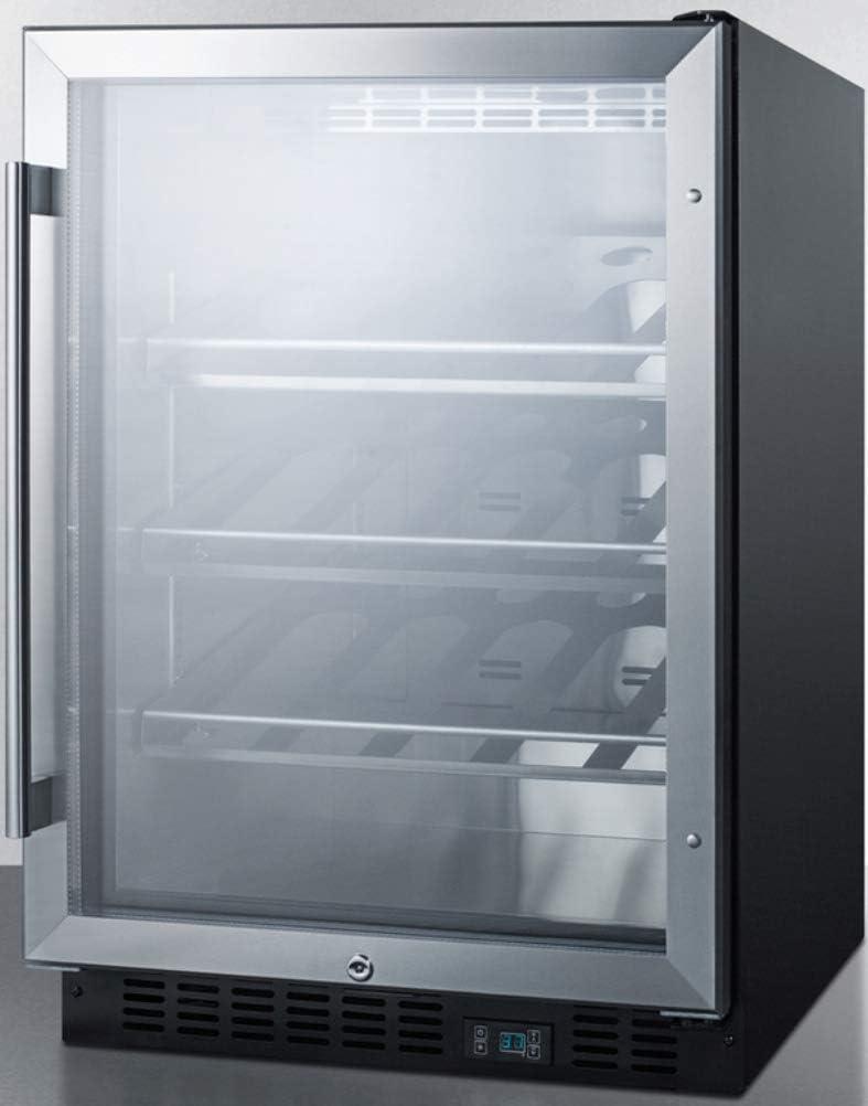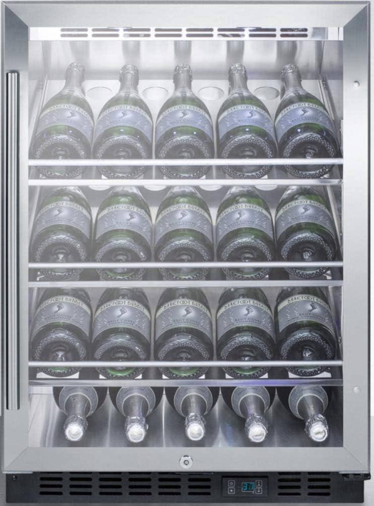 Summit Appliance SCR610BLCH Built-in Undercounter Commercial Wine Cellar with Stainless Steel Interior, Champagne Shelving, Auto Defrost, Digital Controls, Lock and Black Cabinet