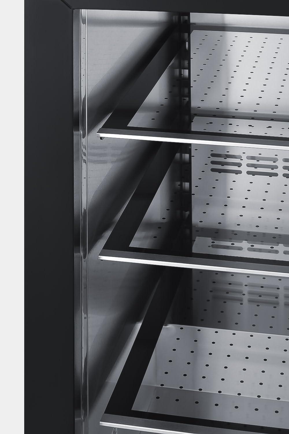 The SCR610BLSD comes in an easy-fitting 24″ footprint, with a front-breathing design that can be built-in under counters or used freestanding. The Stainless steel door includes a professional handle and a factory installed lock.