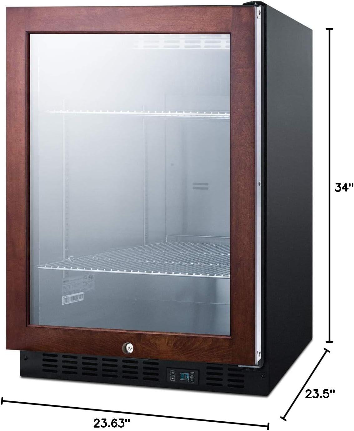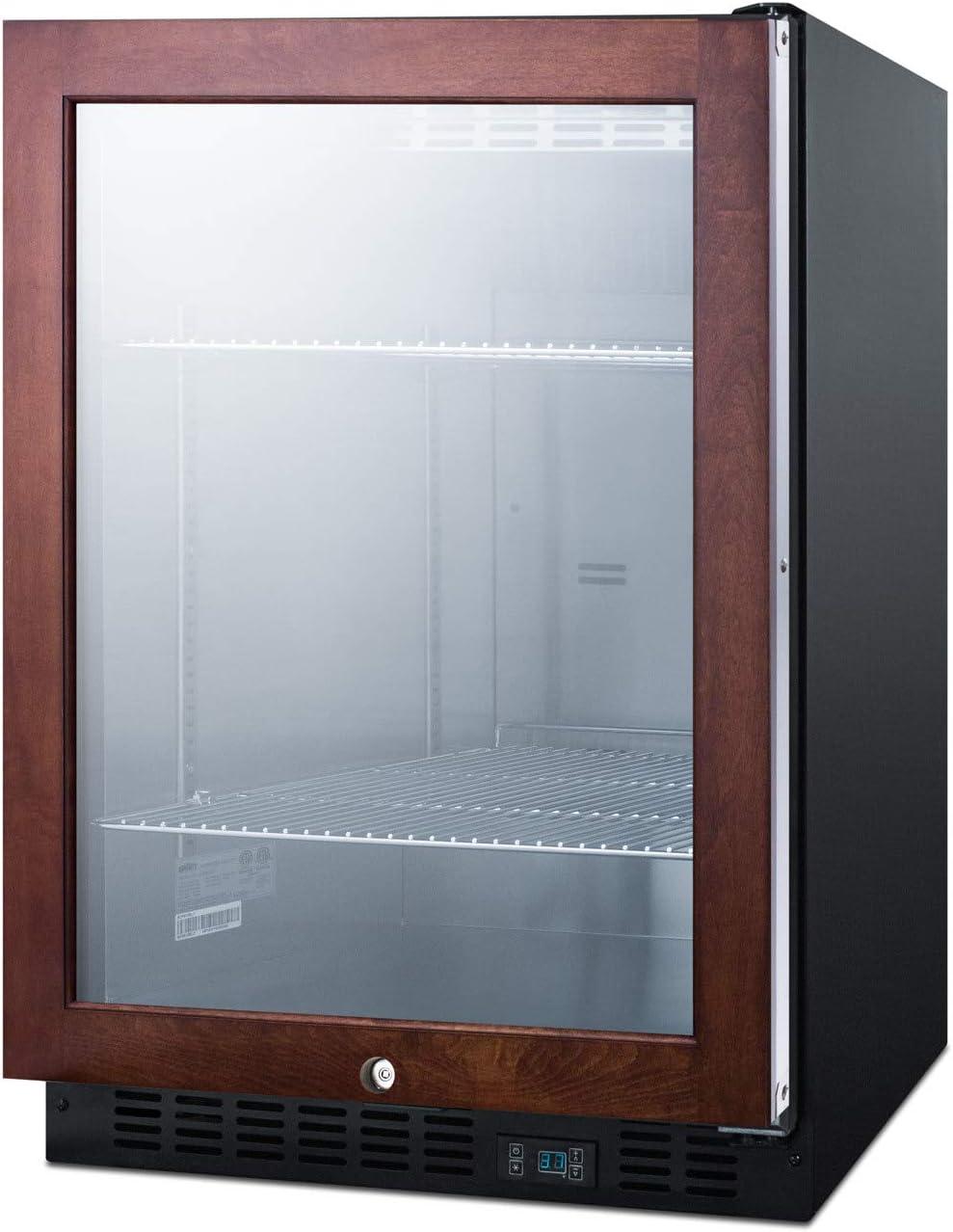 The SCR610BLPNR comes in an easy-fitting 24″ footprint, with a front-breathing design that can be built-in under counters or used freestanding. The double tempered glass door door features a panel-ready door trim that lets you customize the look to best match adjacent cabinetry (panel dimensions: 29 7/8″ H x 23 1/8″ W at 3/4″ minimum thickness). A factory-installed lock offers additional security. This unit ships with a right hand door swing, but can be ordered to open from the other side by adding option LHD. Users provide their own handle. A digital thermostat is located in the kickplate for easy temperature management. Inside, the SCR610BLPNR utilizes low maintenance automatic defrost operation with an internal fan to ensure even temperature distribution. Recessed LED lighting offers the perfect display conditions inside the durable and easy-to-clean stainless steel interior. This unit includes three cantilevered chrome shelves to ensure flexible storage that accommodates any item size. High temperature and open door alarms offer added protection.