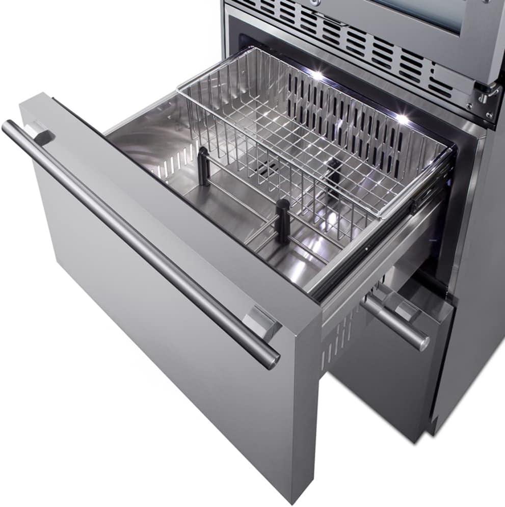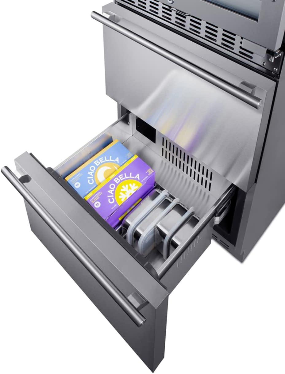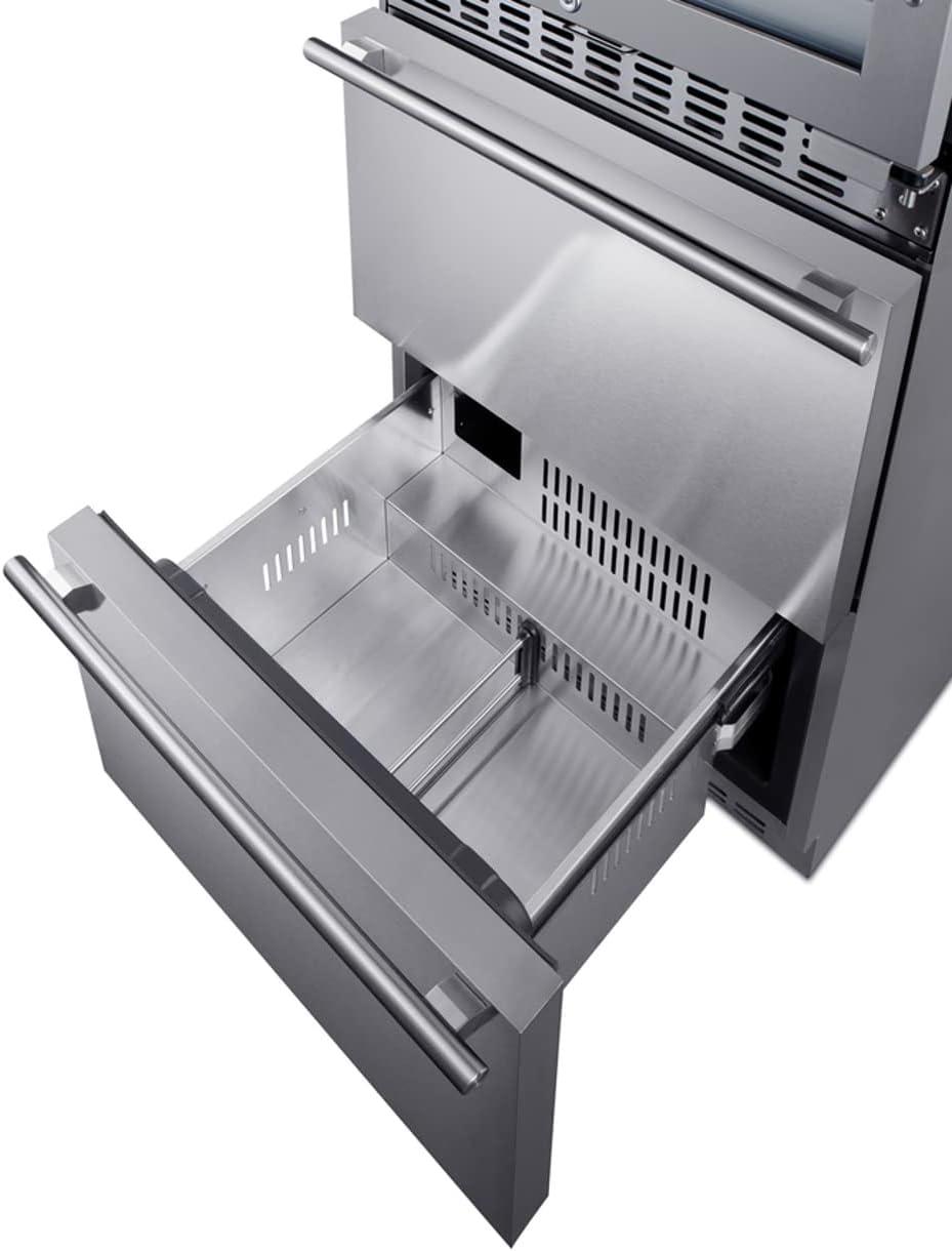 Complete refrigeration storage solution with the dual-zone, 46 bottle capacity wine cellar (model ALWC532PNR) and two-drawer all-freezer (model SCFF532D)