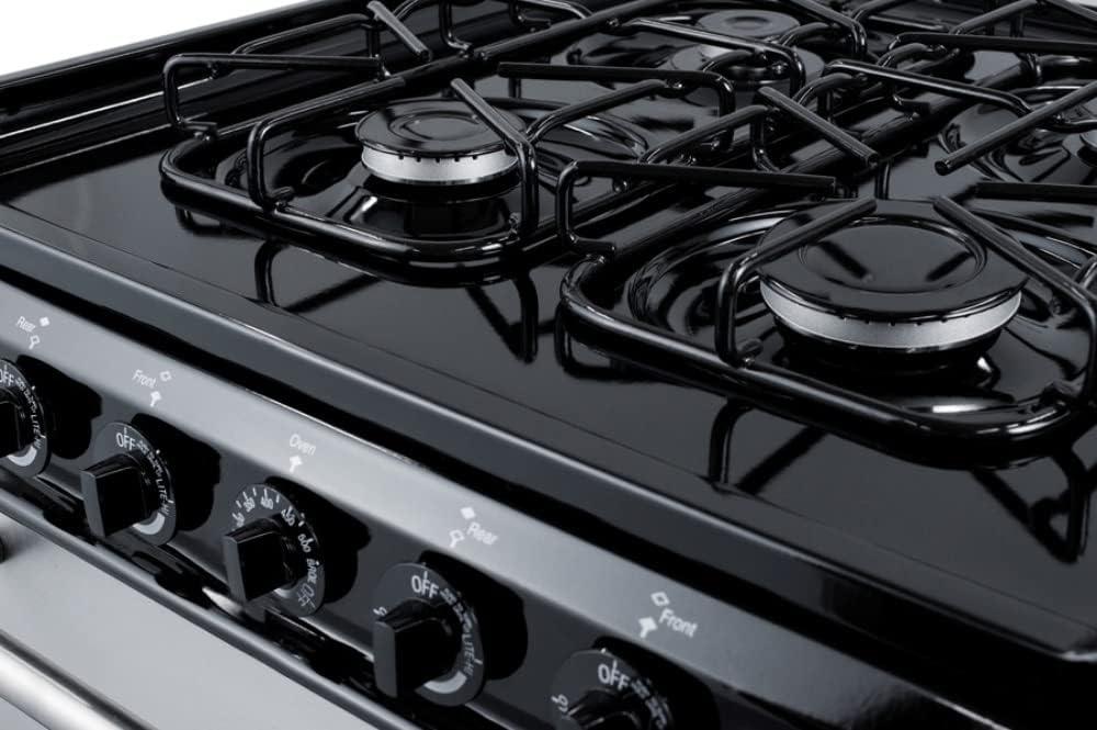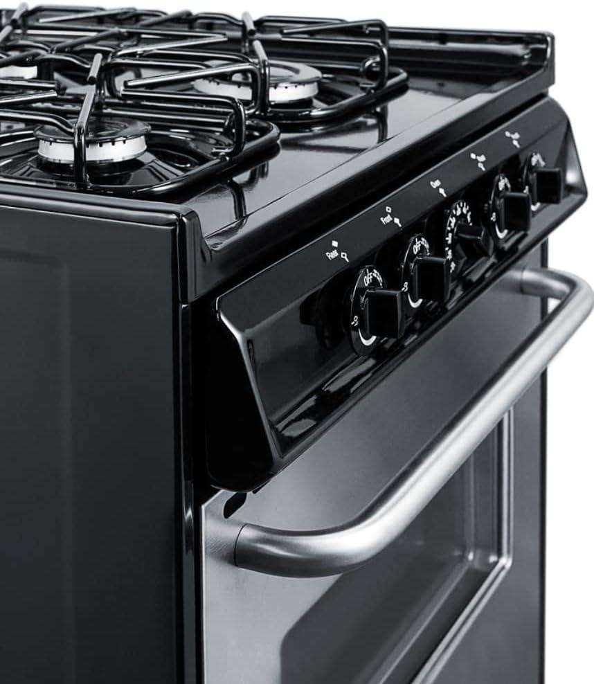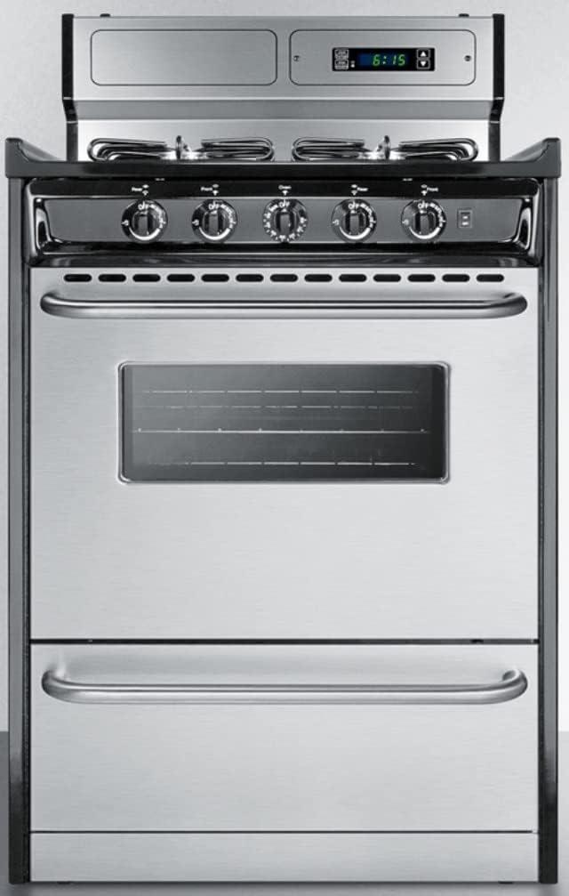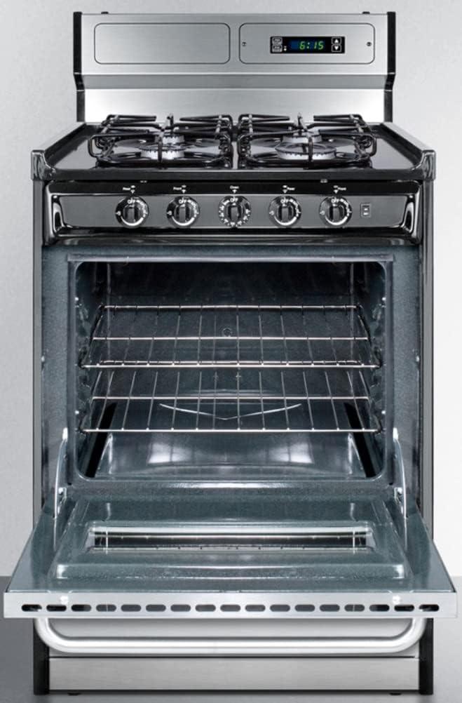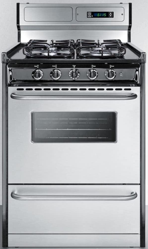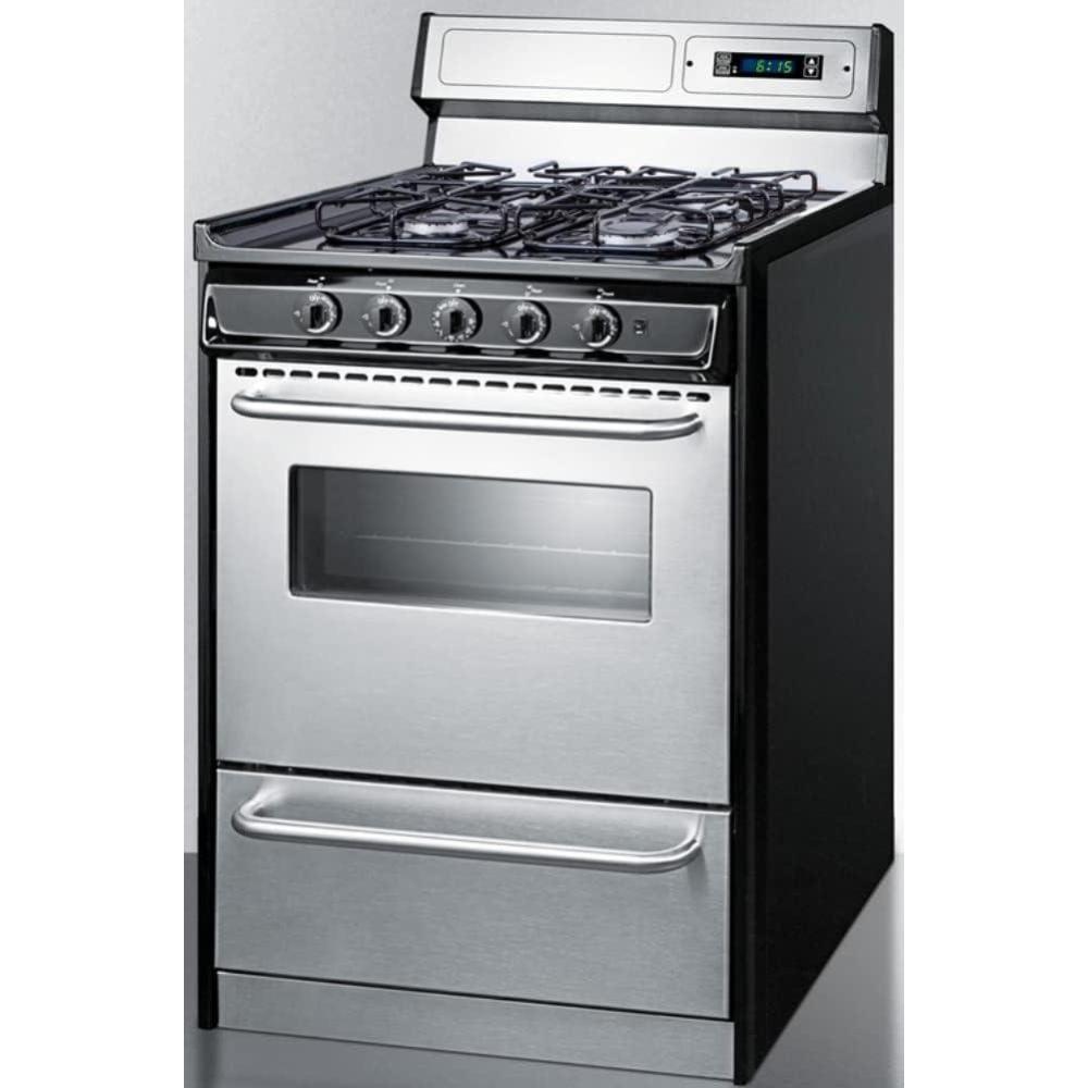 Summit Appliance TTM6307BKSW 24″ Wide Gas Range in Stainless Steel with Sealed Burners, High Backguard, Clock/Timer, Oven Window, Towel Bar Handles and Electronic Ignition