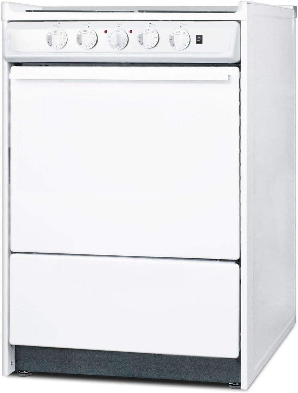 Summit Appliance WEM610R 24″ Wide Slide-in Electric Coil Top Range in White with Lower Storage Compartment, Recessed Oven Door, Broiler Pan, Indicator Lights, Push-to-turn Burner Knobs(White)