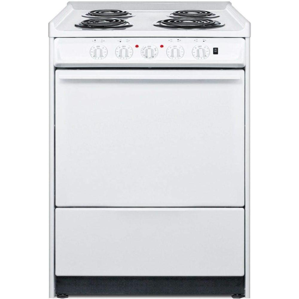 Summit Appliance WEM610R 24" Wide Slide-in Electric Coil Top Range in White with Lower Storage Compartment, Recessed Oven Door, Broiler Pan, Indicator Lights, Push-to-turn Burner Knobs(White)