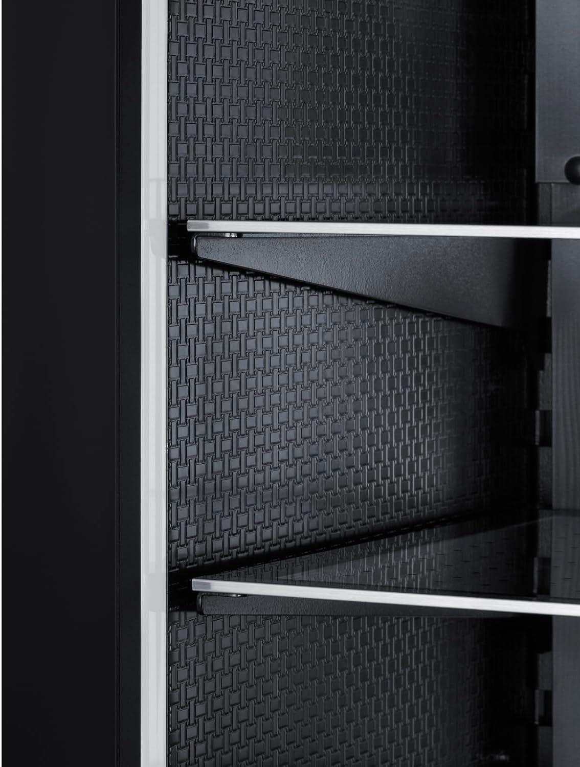 A great look with tons of features and storage: The Oasis Wet Bar is 68.5″ wide and comes in a clean white finish. It features hardwood construction, a stainless steel sink with a faucet, and a pre-installed countertop made from a water-resistant laminate with a marble look. To maximize storage, this model has two cabinets, a spacious drawer, and a wine cubby designed to hold five wine bottles.