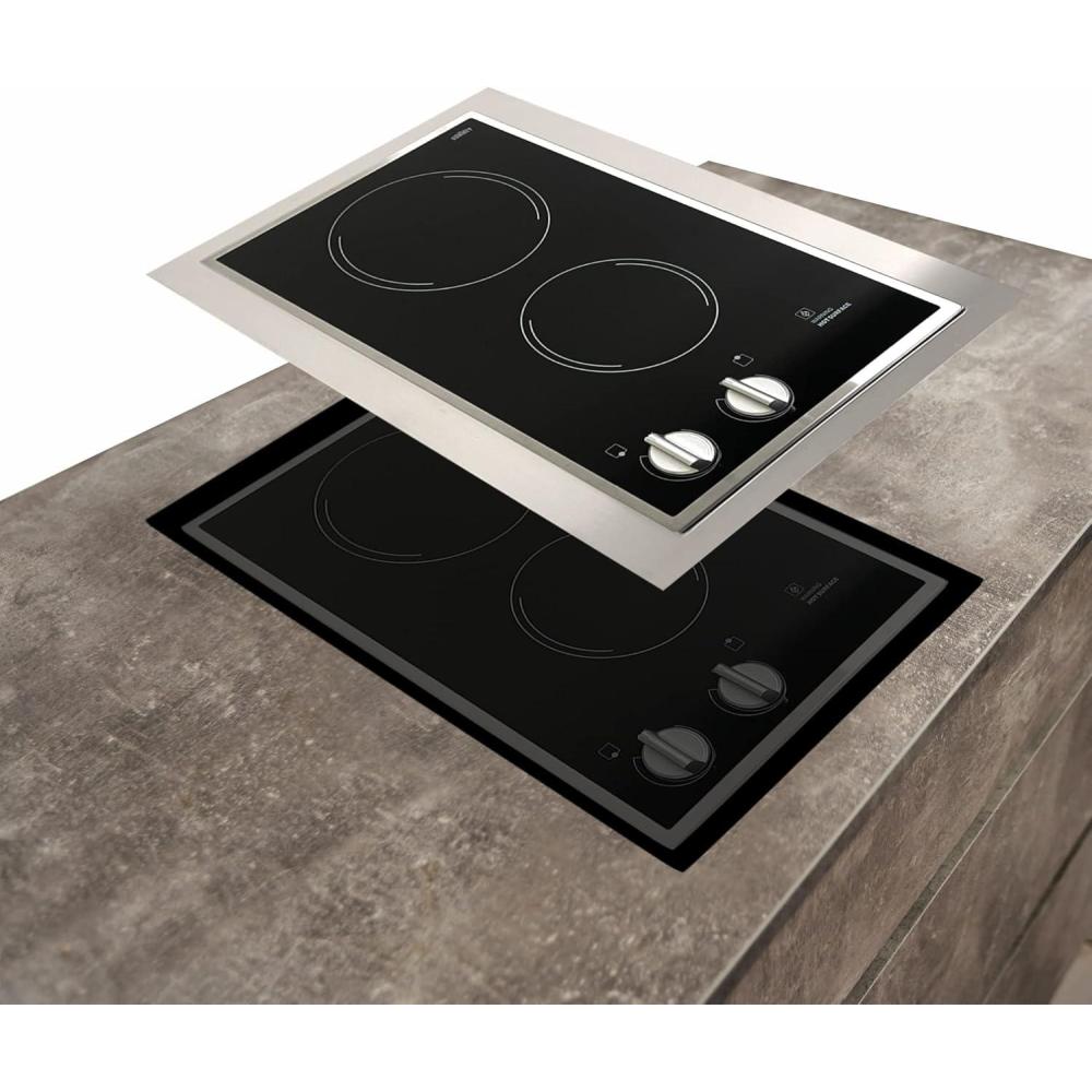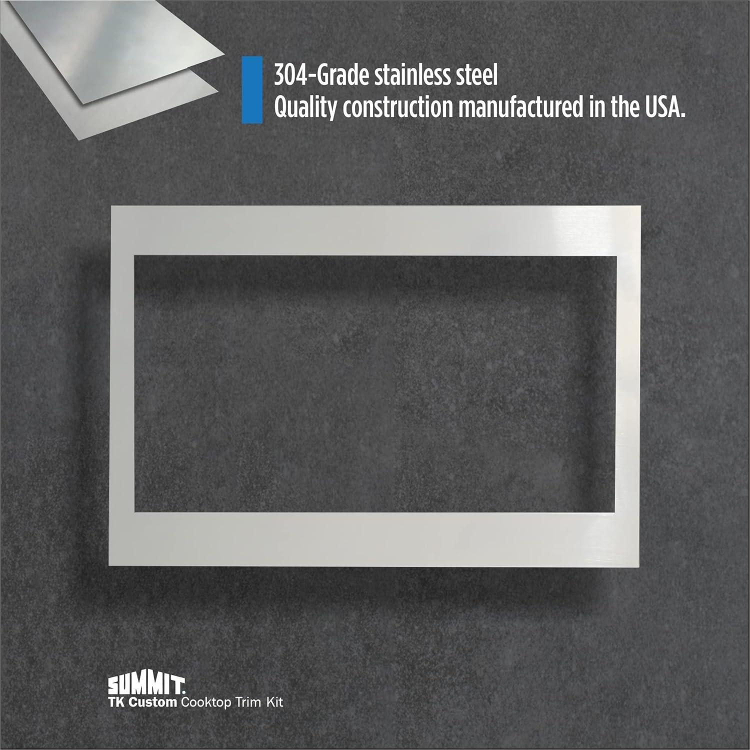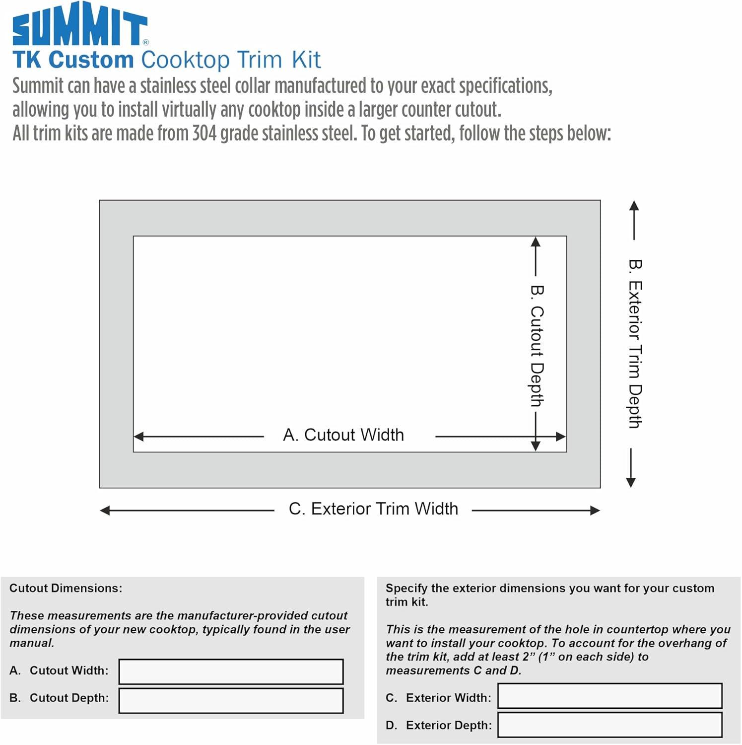 Custom Cooktop Trim Kit: We can build any size Cooktop Trim. Simply tell us the overall size of your cutout and how large you want your trim kit to be, and we will custom-build a collar that allows you to install your cooktop without the added expense of modifying or re-tiling your existing counter. Our custom trim kits can be built to be compatible with any cooktop brand, including all our Summit Cooktops. Our Cooktop Trim Kits are used when installing almost any desired cooktop into an oversized, existing countertop opening.