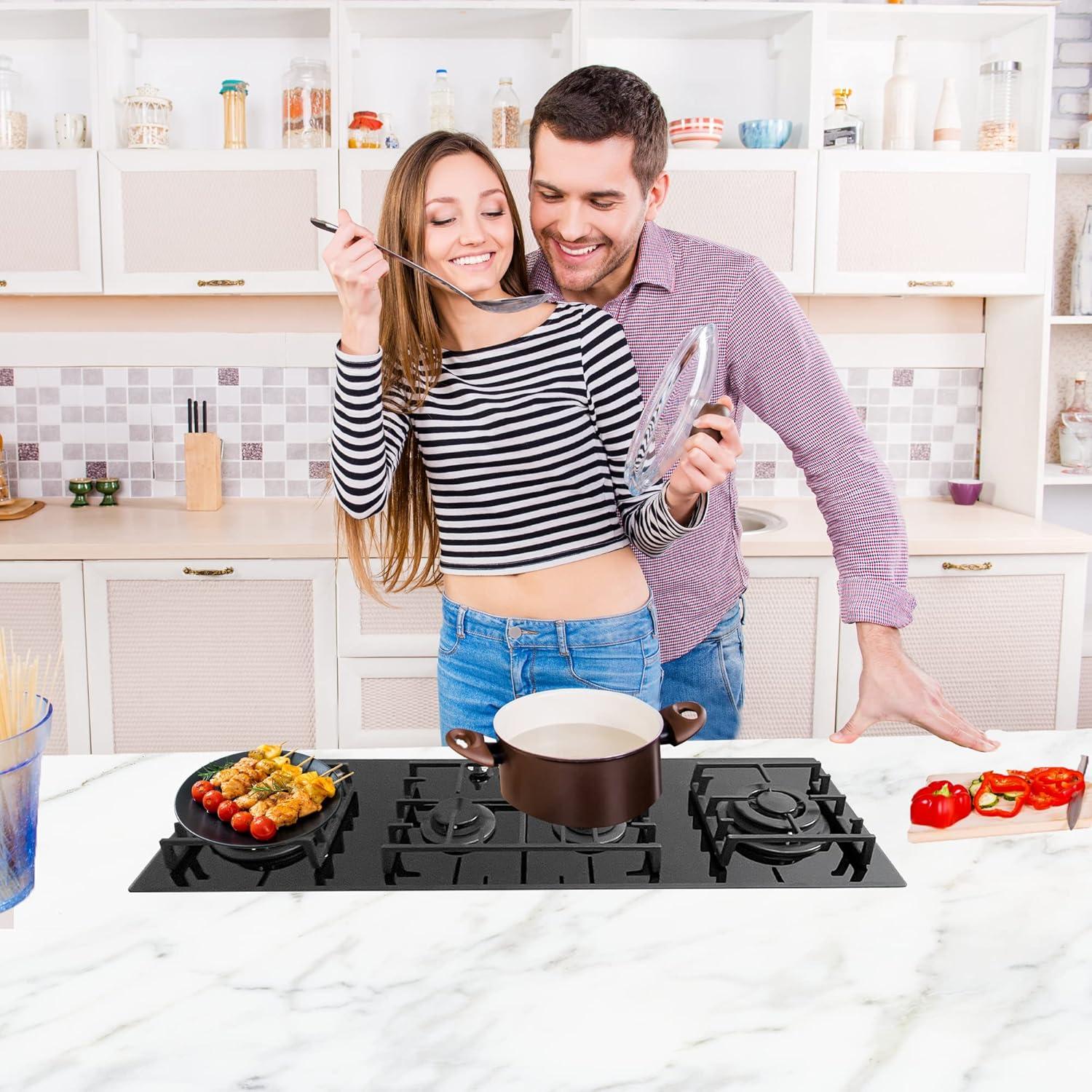 Easy to Install: While the unit size measures 3.2″ H x 43.38″ W x 14.63″ D, it can seamlessly fit into counter spaces sized at 2.0″ H x 41 5/8 ” W x 13 1/2″ D. Perfect fit for smaller spaces such as modern kitchens, kitchen islands, rectangle kitchen counters, luxury kitchens, and compact kitchens. A standard three-pronged 115V cord is pre-installed for easy hookup. The cooktop uses electronic spark ignition and is preset for natural gas operation, but it can be converted to LP with the included kit.