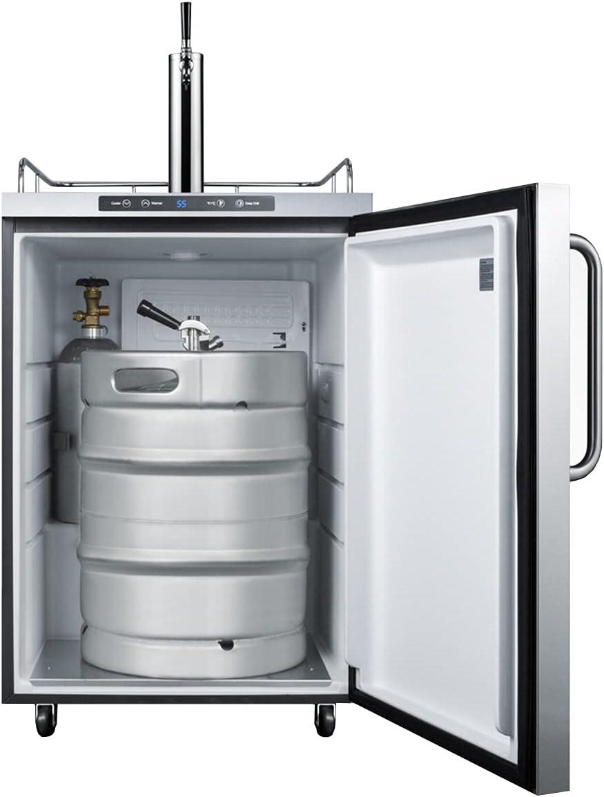 Full-sized capacity to hold half, quarter, 1/6 or mini kegs