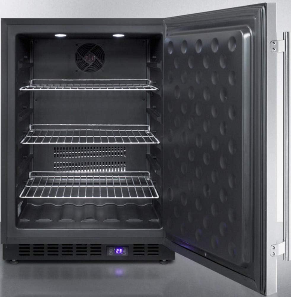 Inside, the SCFF53BSS utilizes frost-free operation with fan-forced cooling to ensure low maintenance and even temperature distribution. Recessed LED lighting offers an attractive yet efficient look. The digital thermostat makes it easy to manage the interior temperature. This unit includes adjustable chrome shelves for flexible storage. Additional features include an open door alarm, high temperature alarm, and Sabbath mode setting that lets you disable some of the electrical elements during periods of observance.
