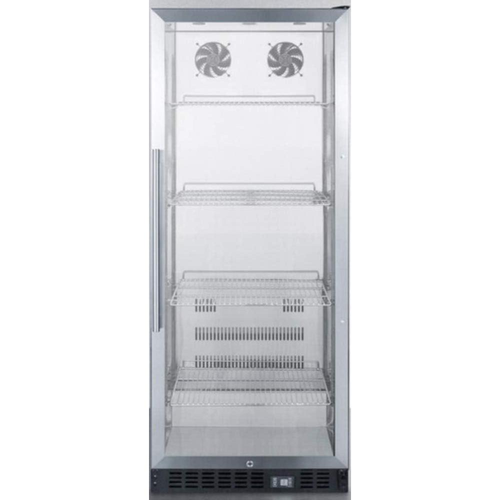 SUMMIT SCR1156 offers 11 . of storage space in a slim width just under 24″. Bottles and cans be stored on heavy duty cantilevered shelves, easily adjustable to accommodate a variety of sizes. The interior is fully constructed from stainless steel for easy clean ability and long-lasting durability. LED lighting offers full illumination of stored products and a digital thermostat ensures easy and intuitive temperature management. The readout can be viewed in Celsius or Fahrenheit.