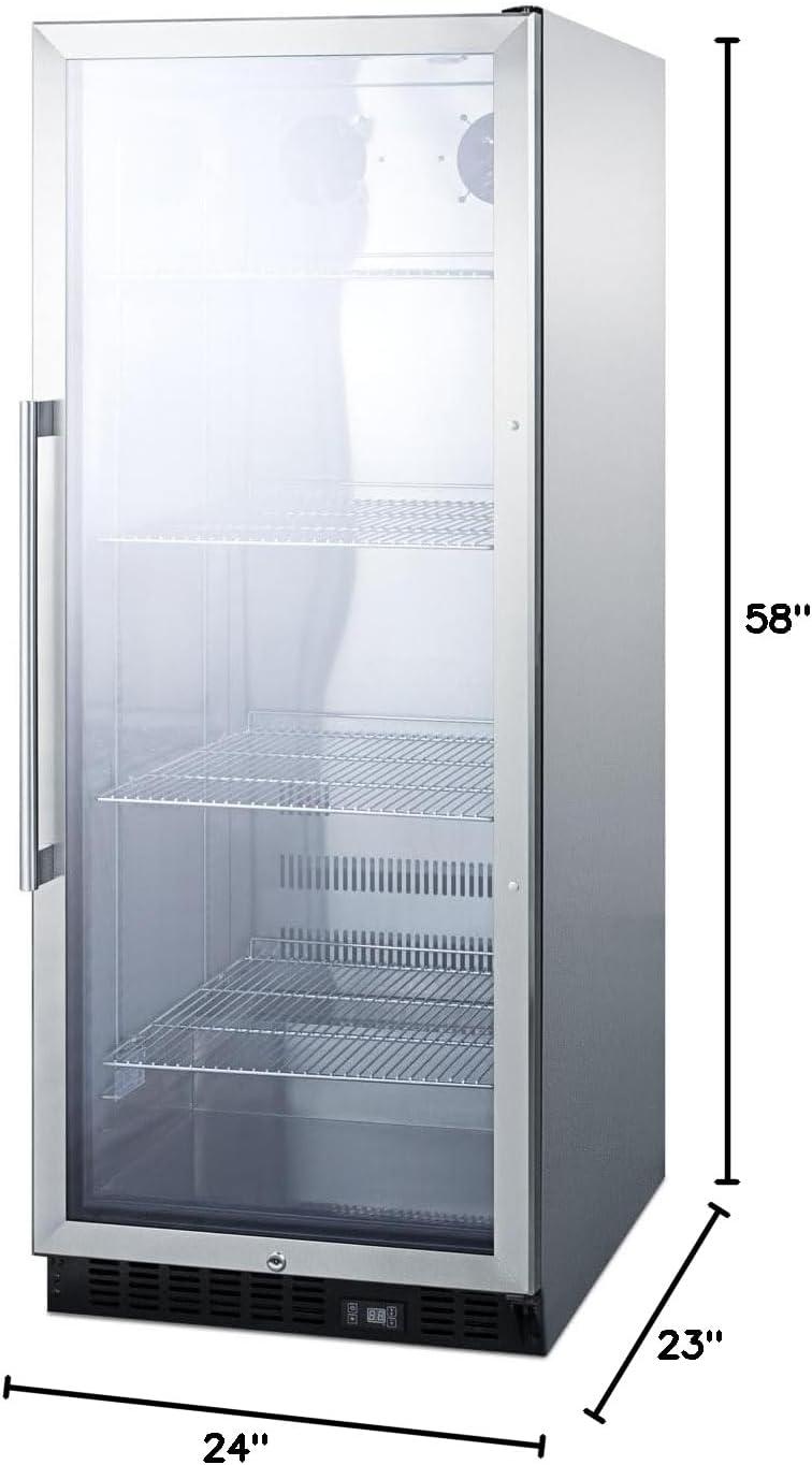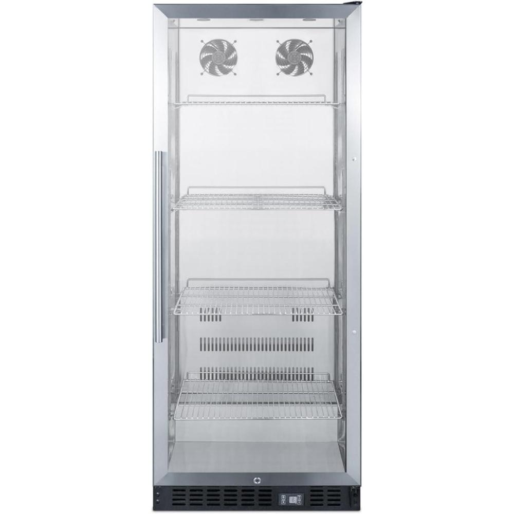SUMMIT SCR1156CSS offers 11 . of storage space in a slim width just under 24″. Bottles and cans be stored on heavy duty cantilevered shelves, easily adjustable to accommodate a variety of sizes. The interior is fully constructed from stainless steel for easy clean ability and long-lasting durability. LED lighting offers full illumination of stored products and a digital thermostat ensures easy and intuitive temperature management. The readout can be viewed in Celsius or Fahrenheit.