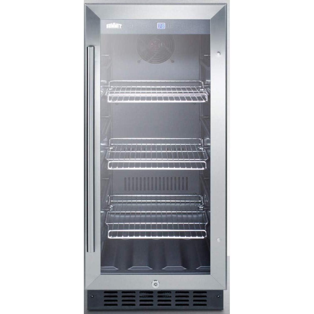 Summit 15” Beverage Center, 2.45 cu.ft. Capacity, Stainless Steel & Glass- SCR1536BG(Glass/Black)