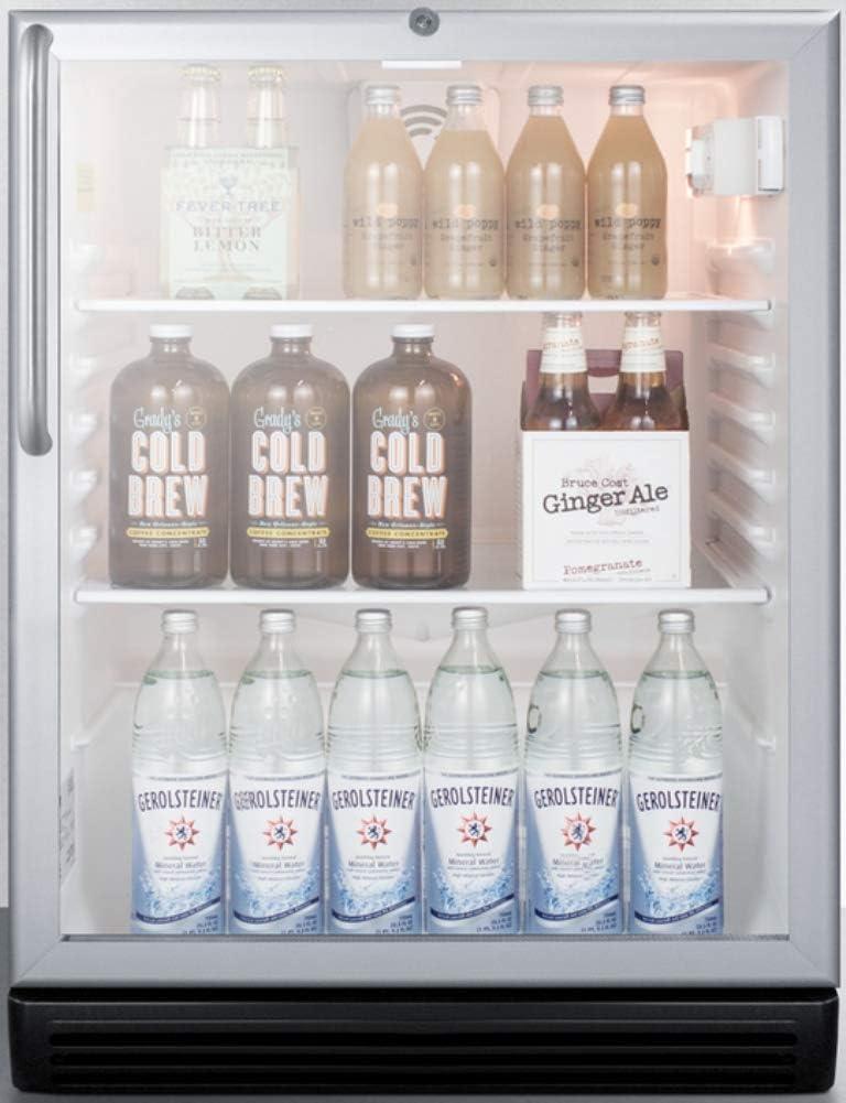 Summit Appliance SCR600BGLCSSADA Commercially Listed ADA Compliant Built-In Undercounter Beverage Center with Stainless Steel Wrapped Cabinet,Glass Door, Auto Defrost, Towel Bar Handle and Lock