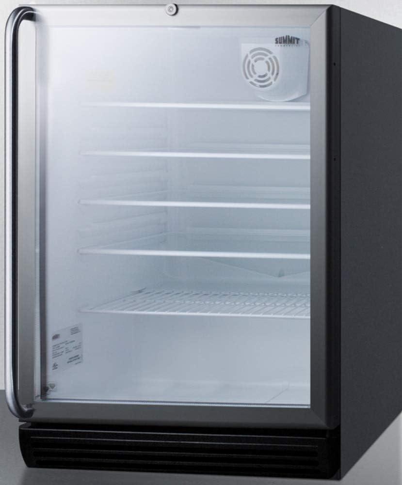 Summit Appliance SCR600BGLSHADA Commercially Listed ADA Compliant 5.5 Cu.Ft. Freestanding Beverage Center with Glass Door, Auto Defrost, Full-Length Towel Bar Handle, Lock and Black Cabinet