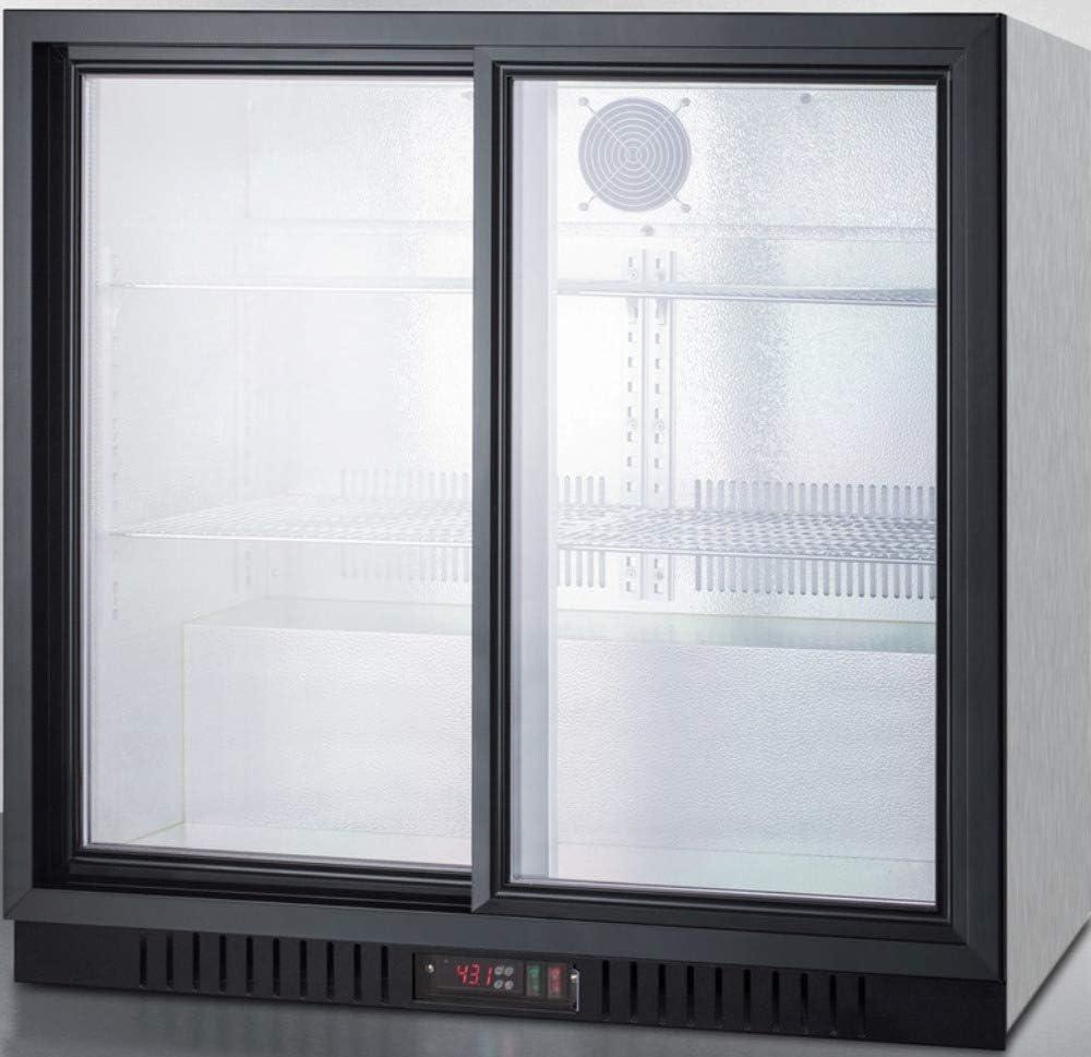 Summit Appliance SCR700BCSS Commercial Back Bar 36″ Wide Beverage Center for Freestanding Use with Sliding Glass Doors, Auto Defrost, Digital Thermostat, Interior Light and Stainless Steel Cabinet