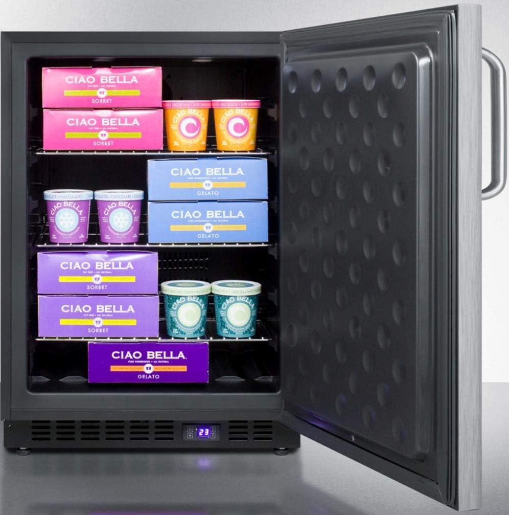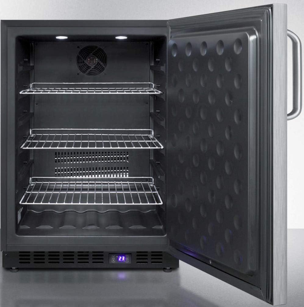 The SPFF51OSSSTB is a 24″ wide all-freezer designed for built-in or freestanding use, with a fully finished jet black cabinet and 304 grade stainless steel wrapped door. The door includes a factory installed lock and our signature towel bar handle in brushed stainless steel.